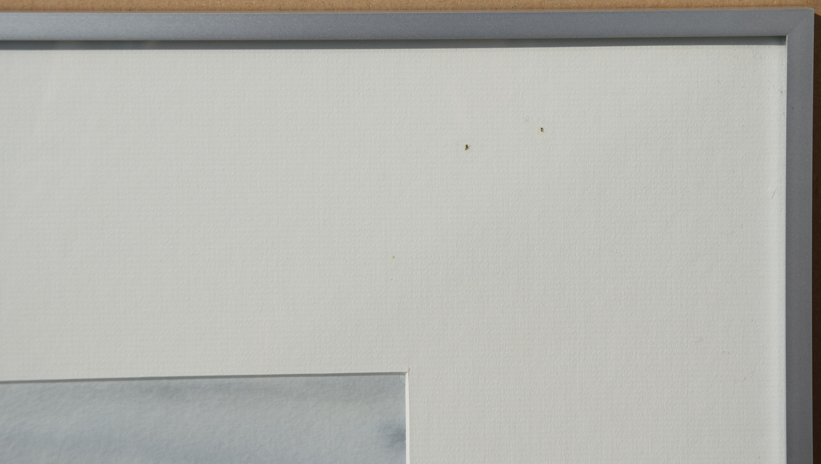 Rahmen ungeöffnet; Blatt unter Passepartout; Farben sehr leicht aufgehellt; Passepartout partiell sehr leicht fleckig