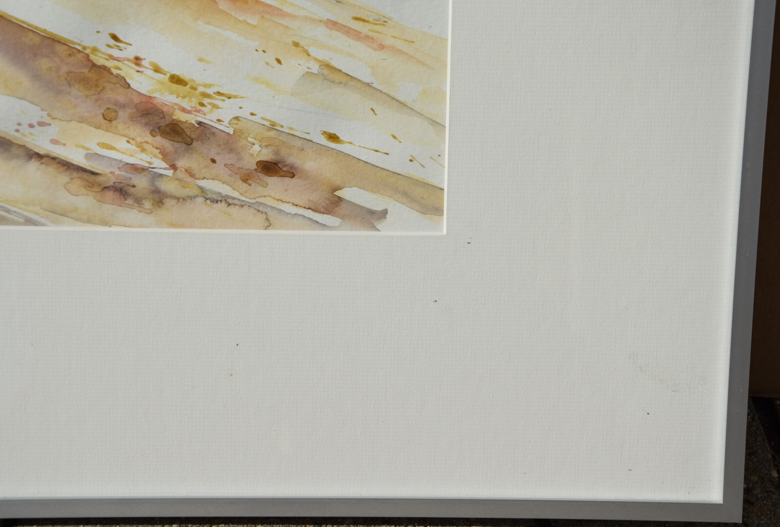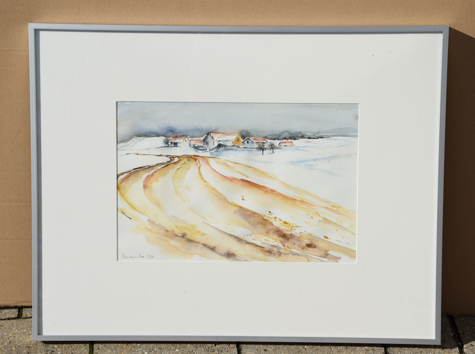 Aquarell und Bleistift auf leicht strukturiertem Aquarellkarton, unter Passepartout, gerahmt („Halbe“), unter Glas [Rahmen ungeöffnet]