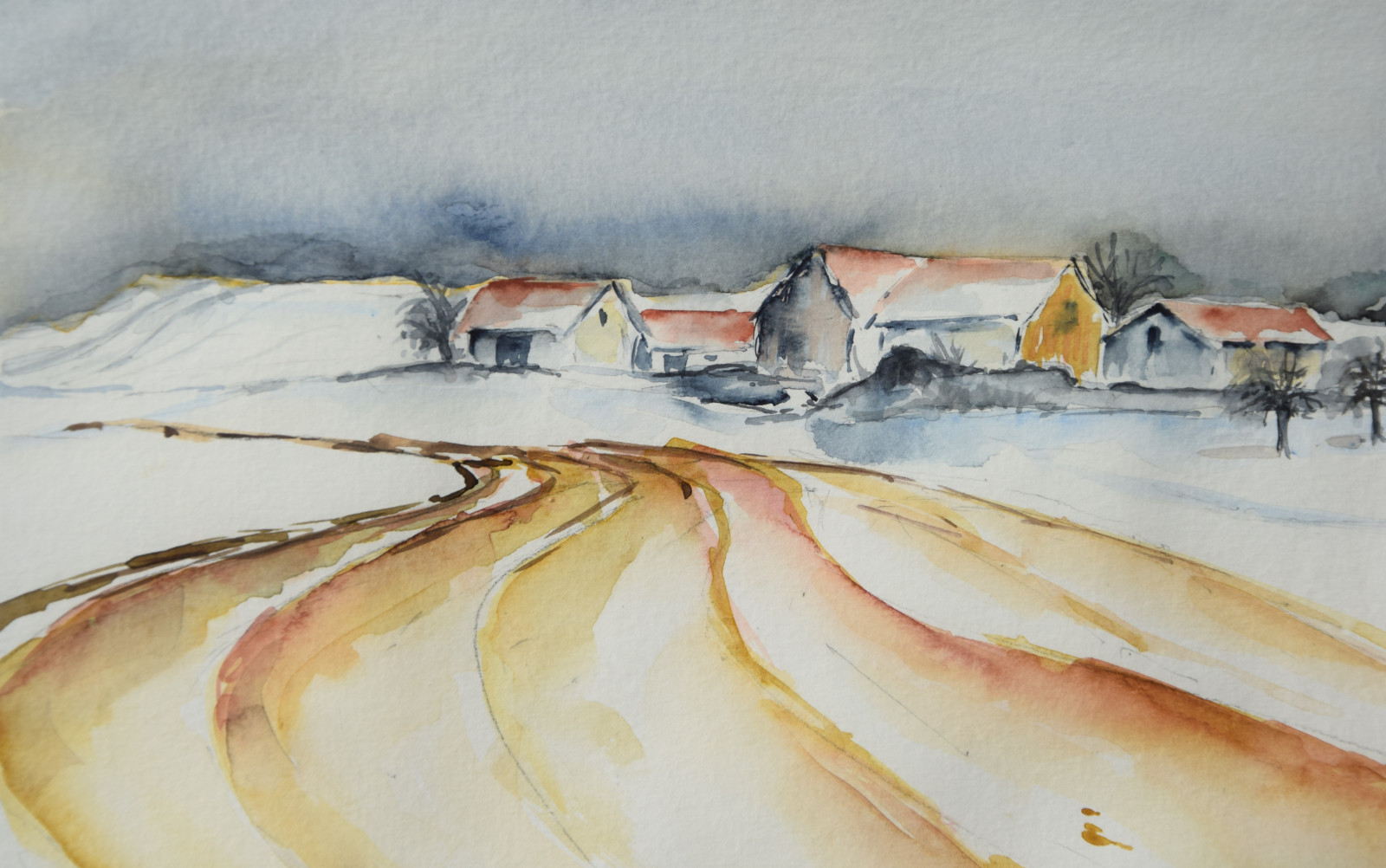 Aquarell und Bleistift auf leicht strukturiertem Aquarellkarton