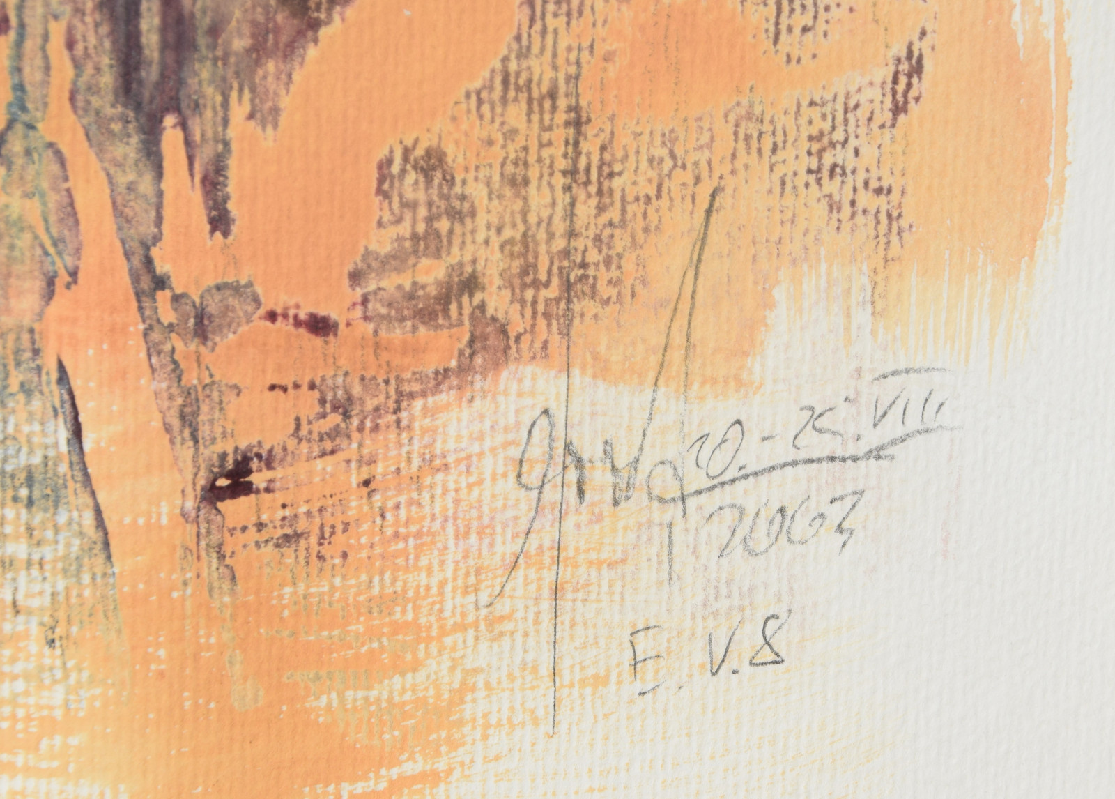 unten rechts in Blei datiert „20.-25. VIII. 2003“, sowie ebenso datiert verso auf aufgeklebtem Künstlerzettel