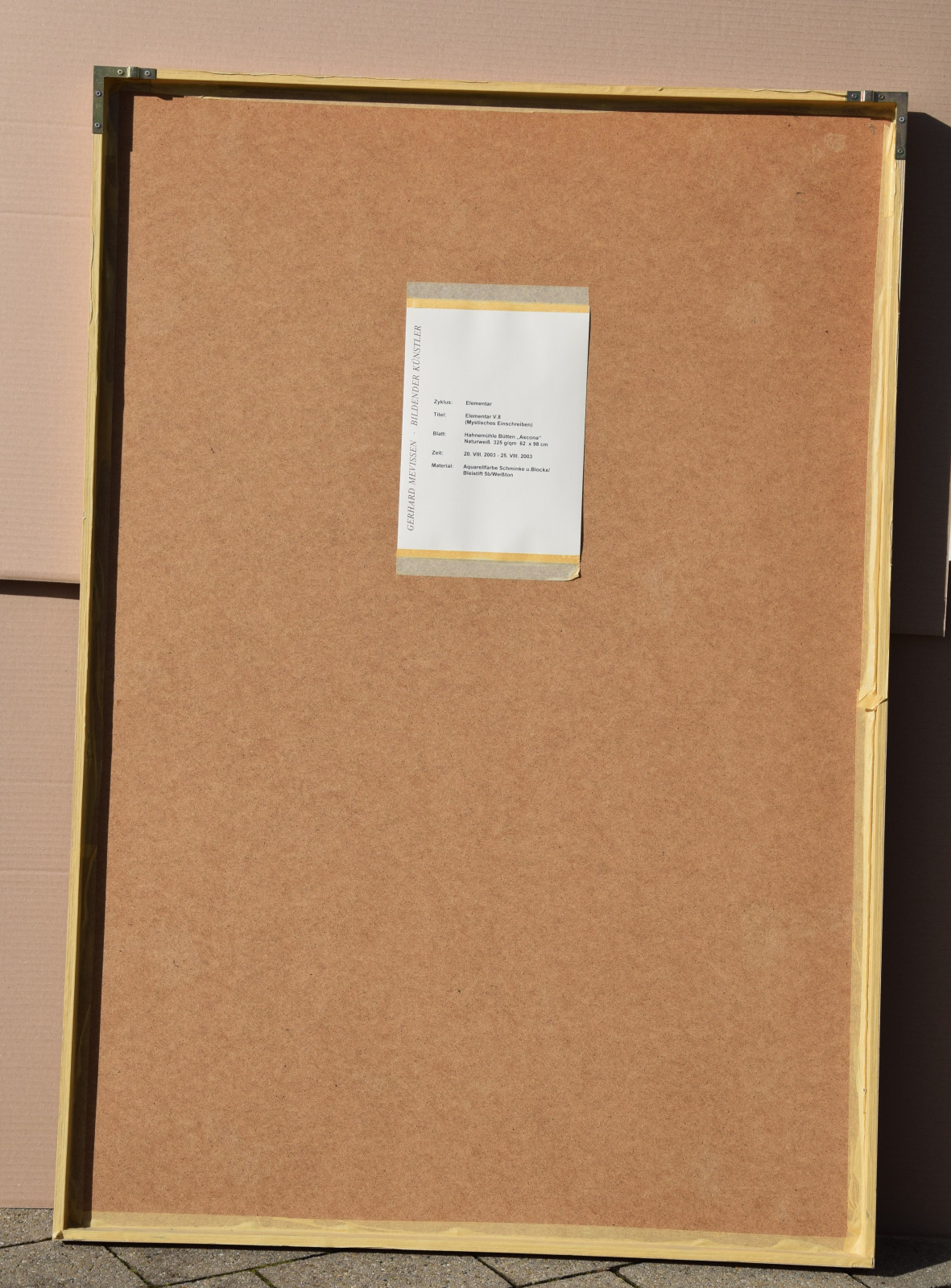 Dieses hier vorliegende, großformatige Aquarell entstand zu Beginn des „Elementar“-Zyklus, den der Künstler 2003 begann und seitdem fortsetzt. Taggenau ist die Schaffenszeit datiert auf den 20. bis zum 25. August 2003.