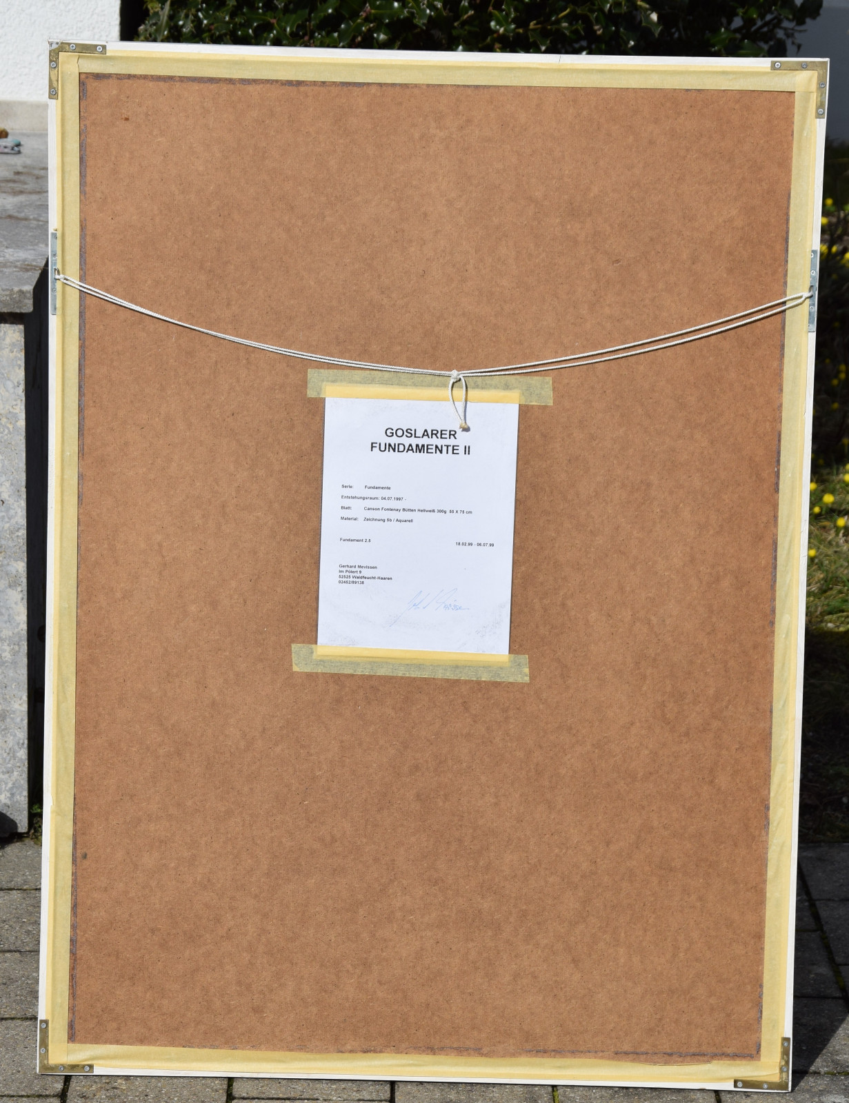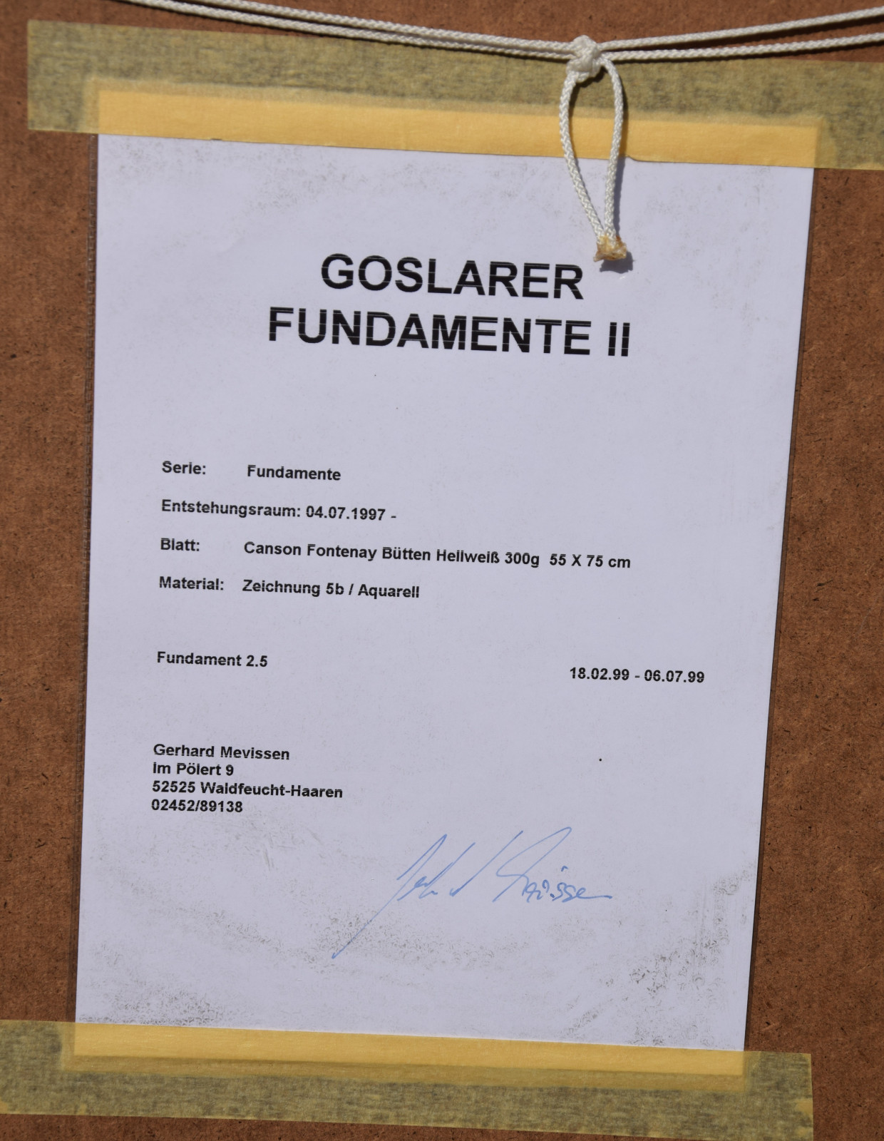 Dieses hier gezeigte Aquarell ist Teil der „Goslarer Fundamente“. Der beachtenswert lange Entstehungszeitraum wurde vom Künstler dabei taggenau bezeichnet mit der Zeit vom 18. Februar bis zum 6. Juli 1999.