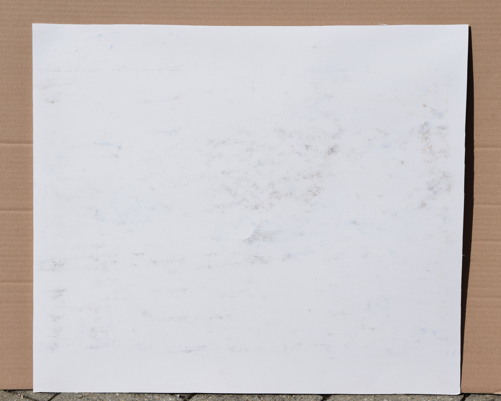 Werk verso mittig befestigt auf weißem Karton; Ecken schwach bestoßen; in der oberen Bildhälfte schwach fleckig