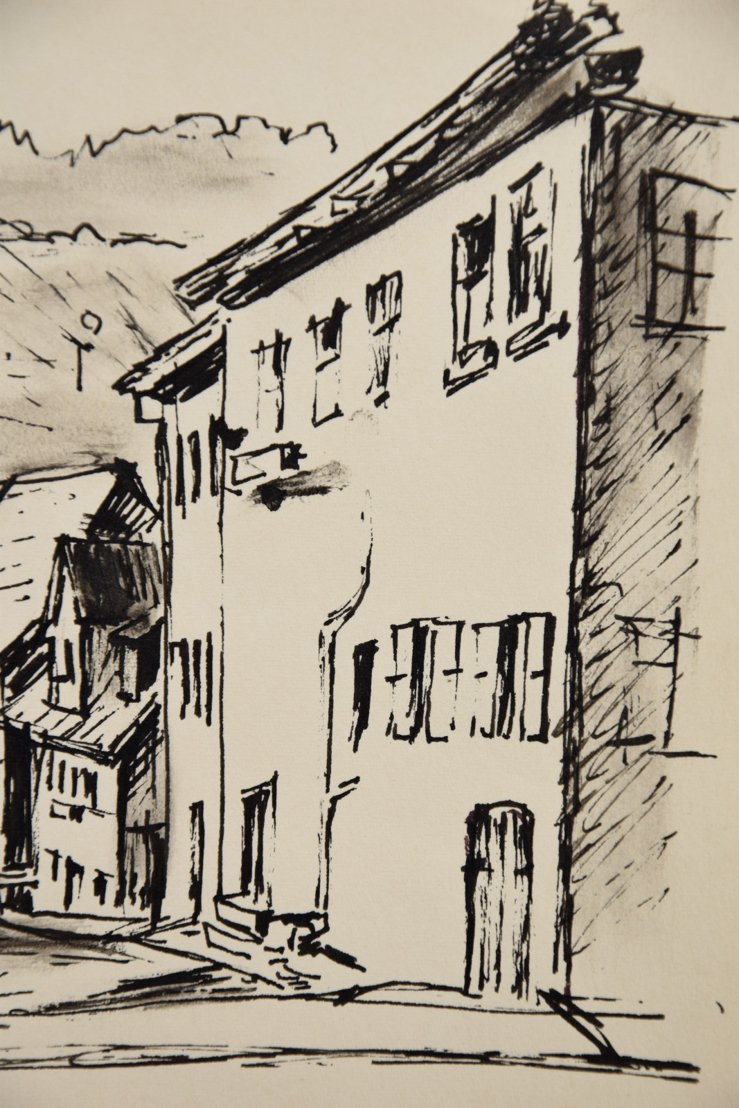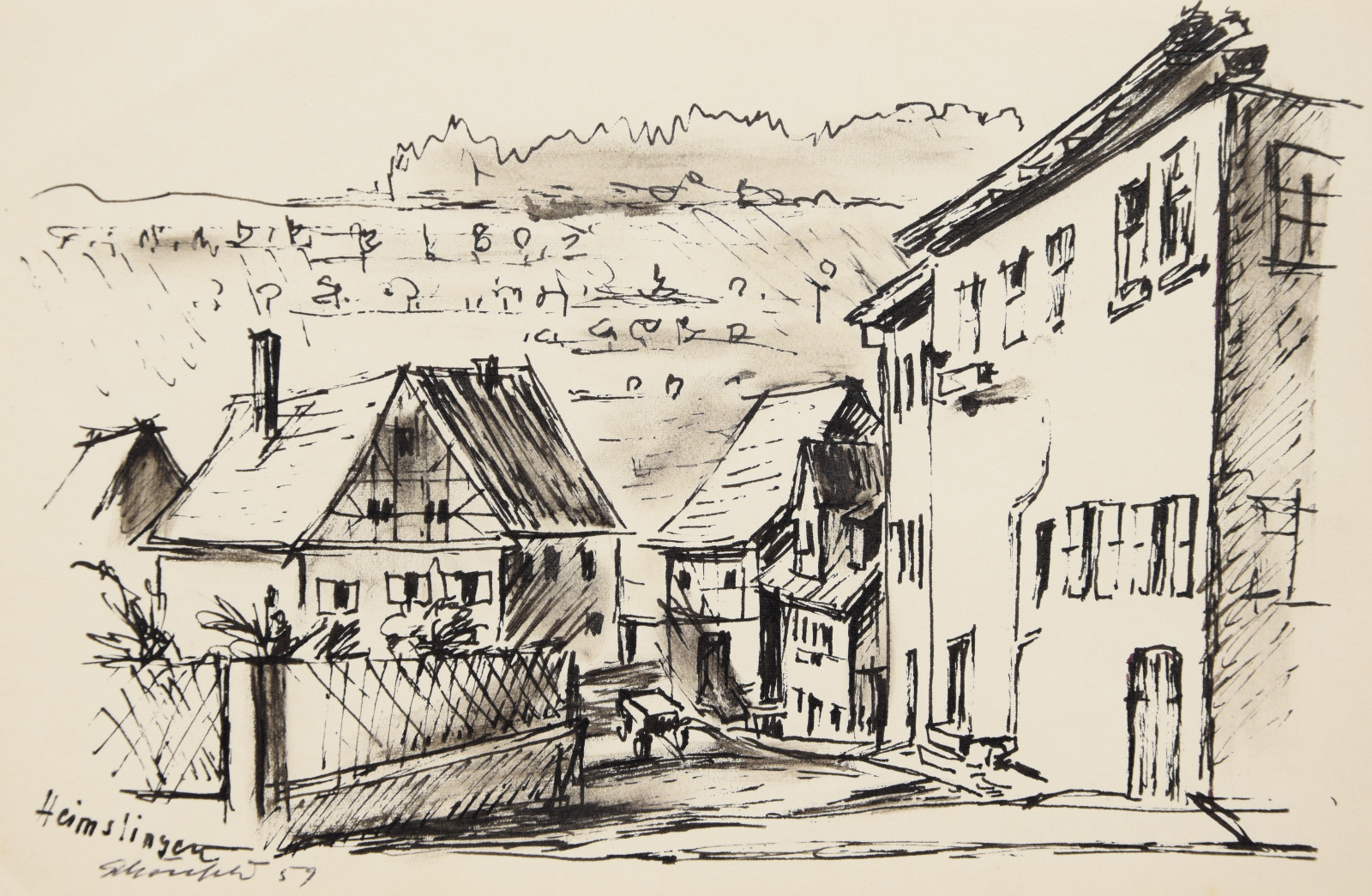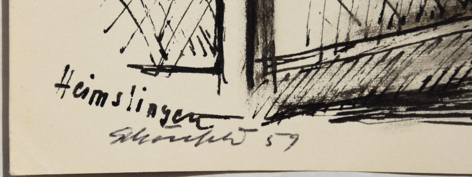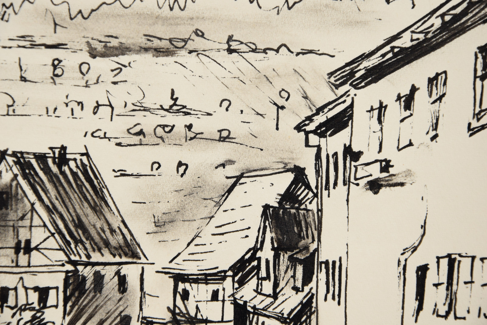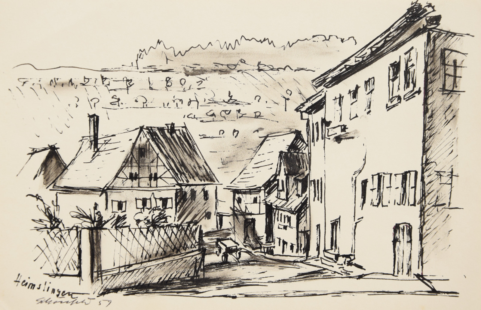 Tuschfeder (teilweise grau laviert) auf festerem Zeichenpapier