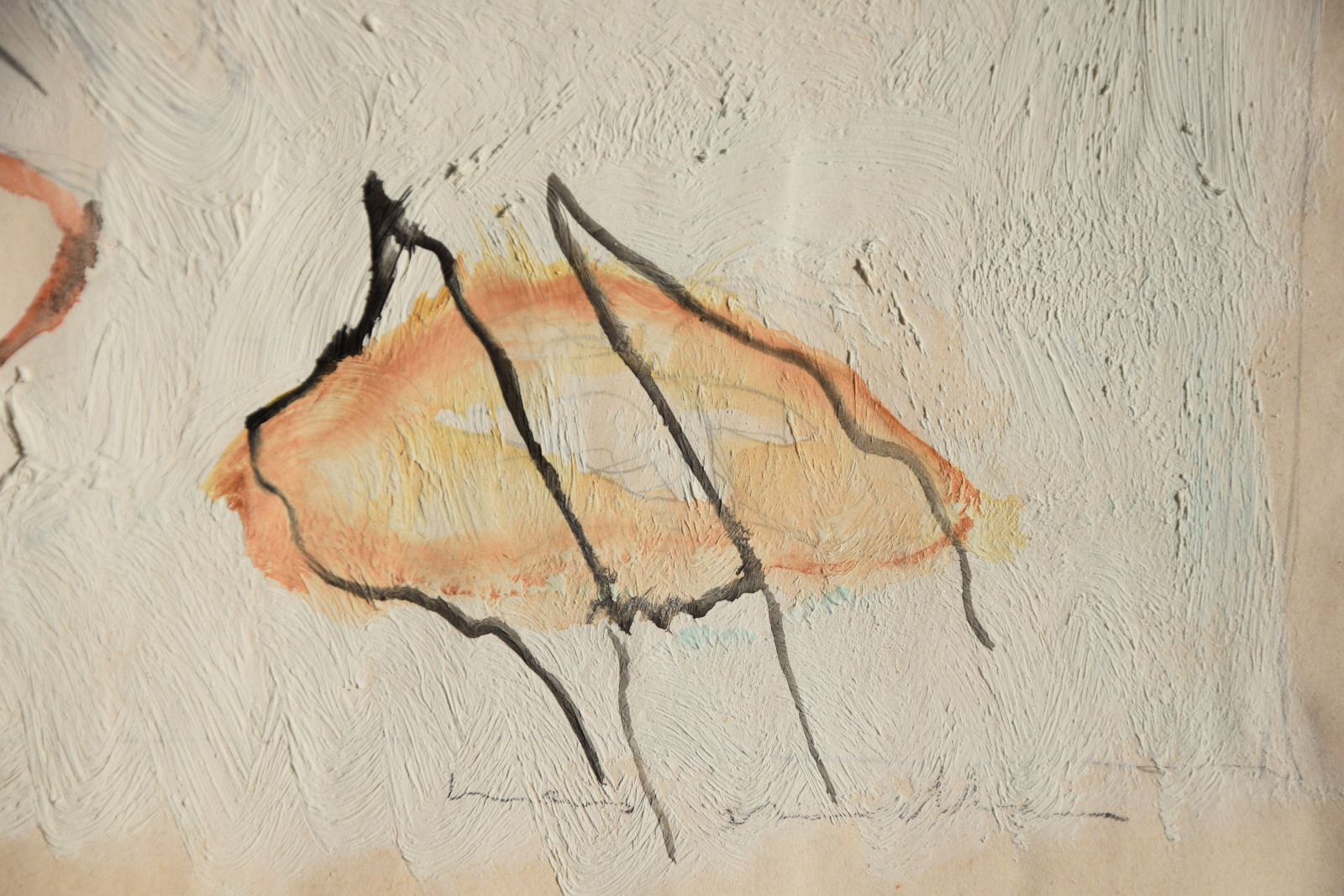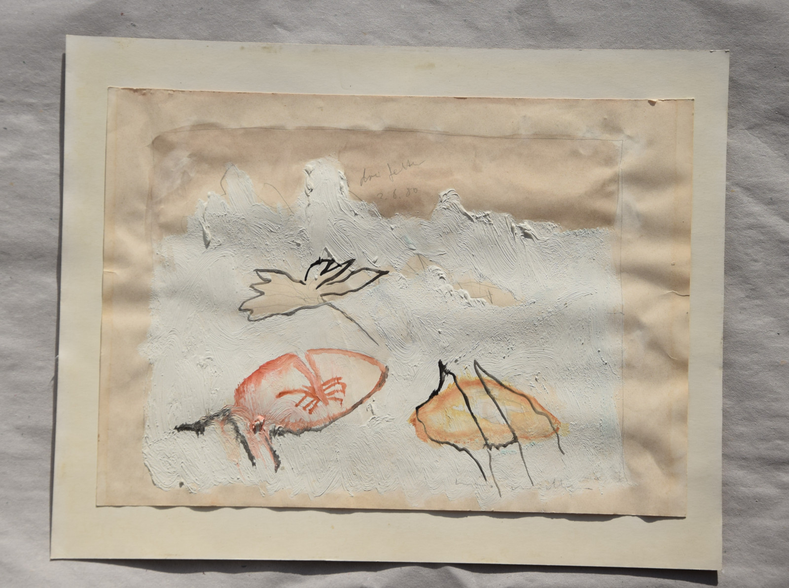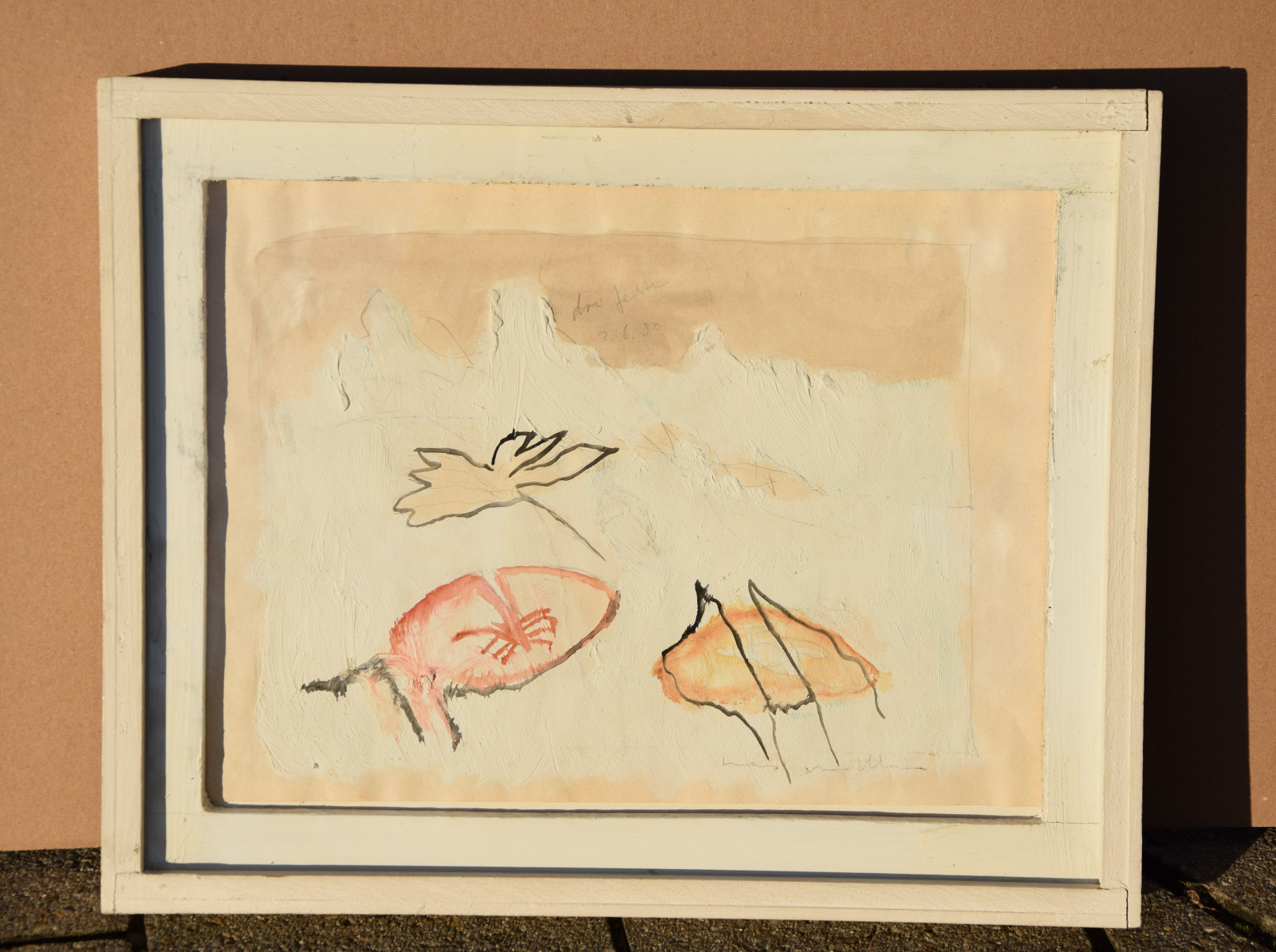 Öl-, Aquarellfarben, Bleistift auf leichtem Karton, gerahmt [Originalrahmen]