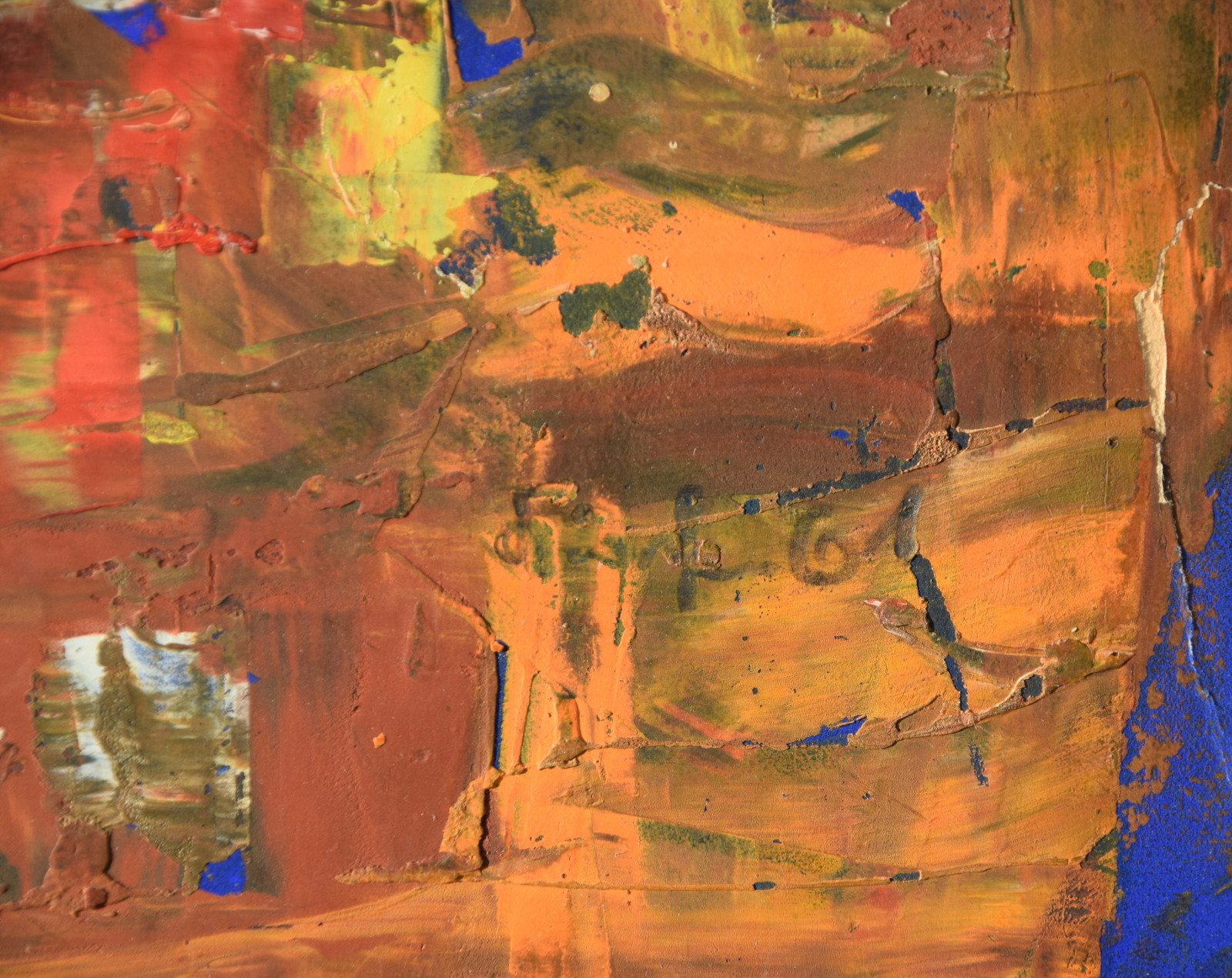 Abstraktion in Gelb, Rot, Braun und Weiß vor Blau (1961)