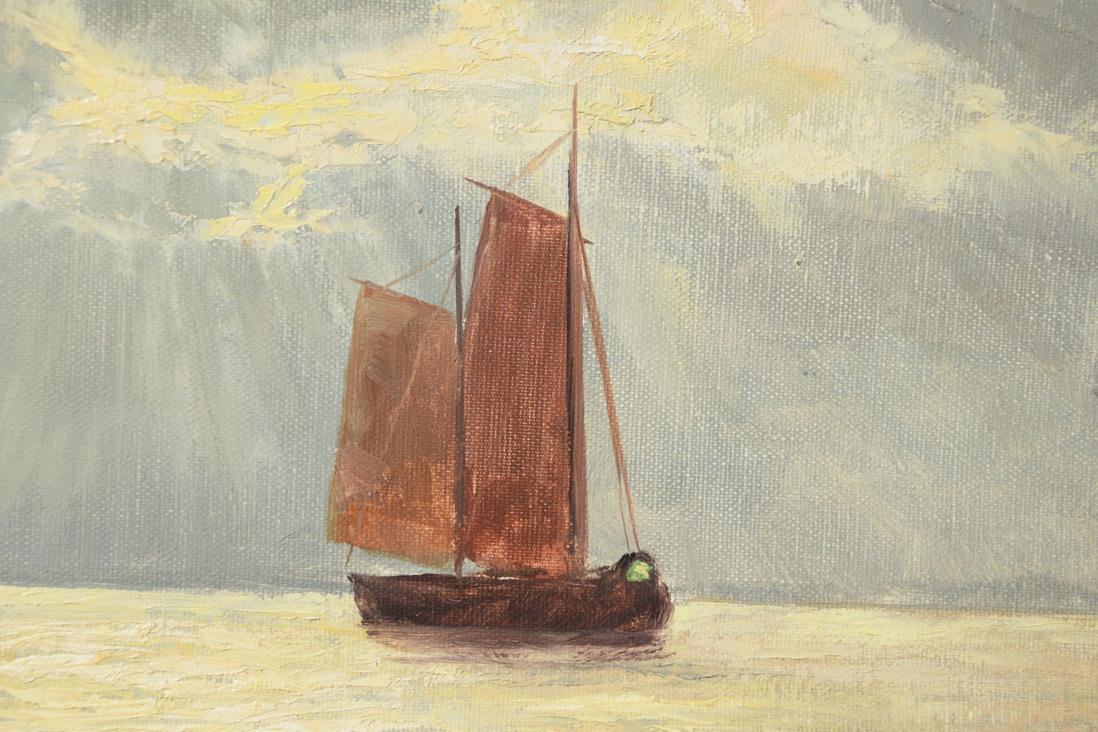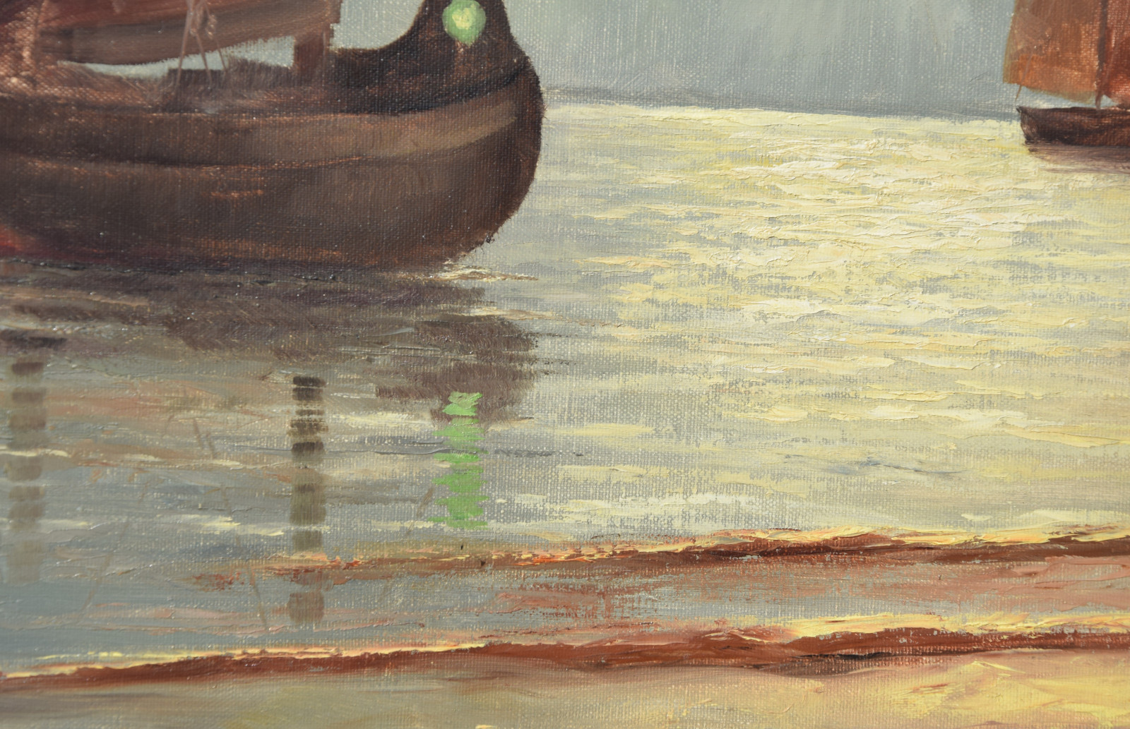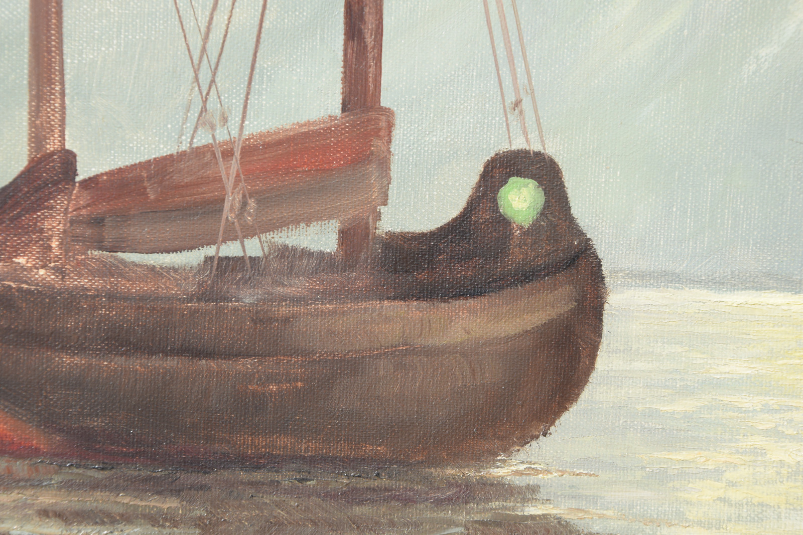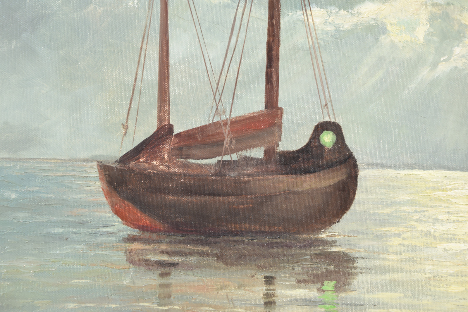 ohne Titel [zwei Fischerboote an der Küste im Morgenlicht, gemalt nach einer Vorlage]