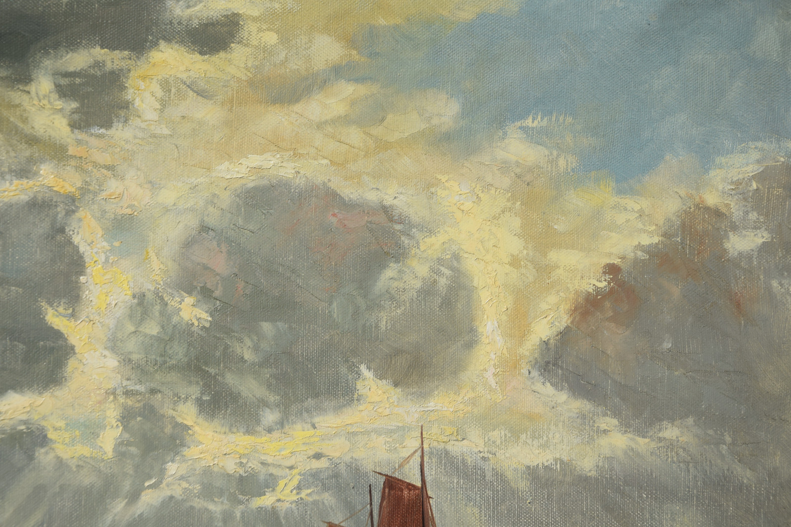 an wenigen Stellen sehr leicht fleckig; Leinwand verso schwach fleckig; Rahmen an wenigen Stellen etwas berieben