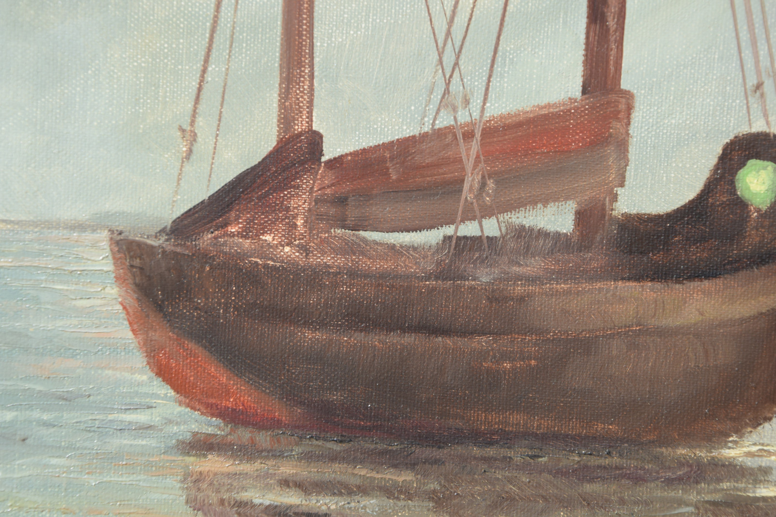 Dieste wird hier wohl eher eine Vorlage gehabt haben, als dass er dieses Motiv in realiter vor sich sah. Der Bildaufbau, das Motiv, die Farbgebung lassen sich auch bei anderen Gemälden nachweisen, wobei hier beispielsweise die „Fischerboote“ (‚Rybářské lodě‘) von dem tschechischen Künstler Augustin Satra (1877-1909) zu nennen sind. Vielleicht sah Dieste hiervon oder von einem anderen Werk eine Abbildung in einem Katalog oder einer Zeitschrift?