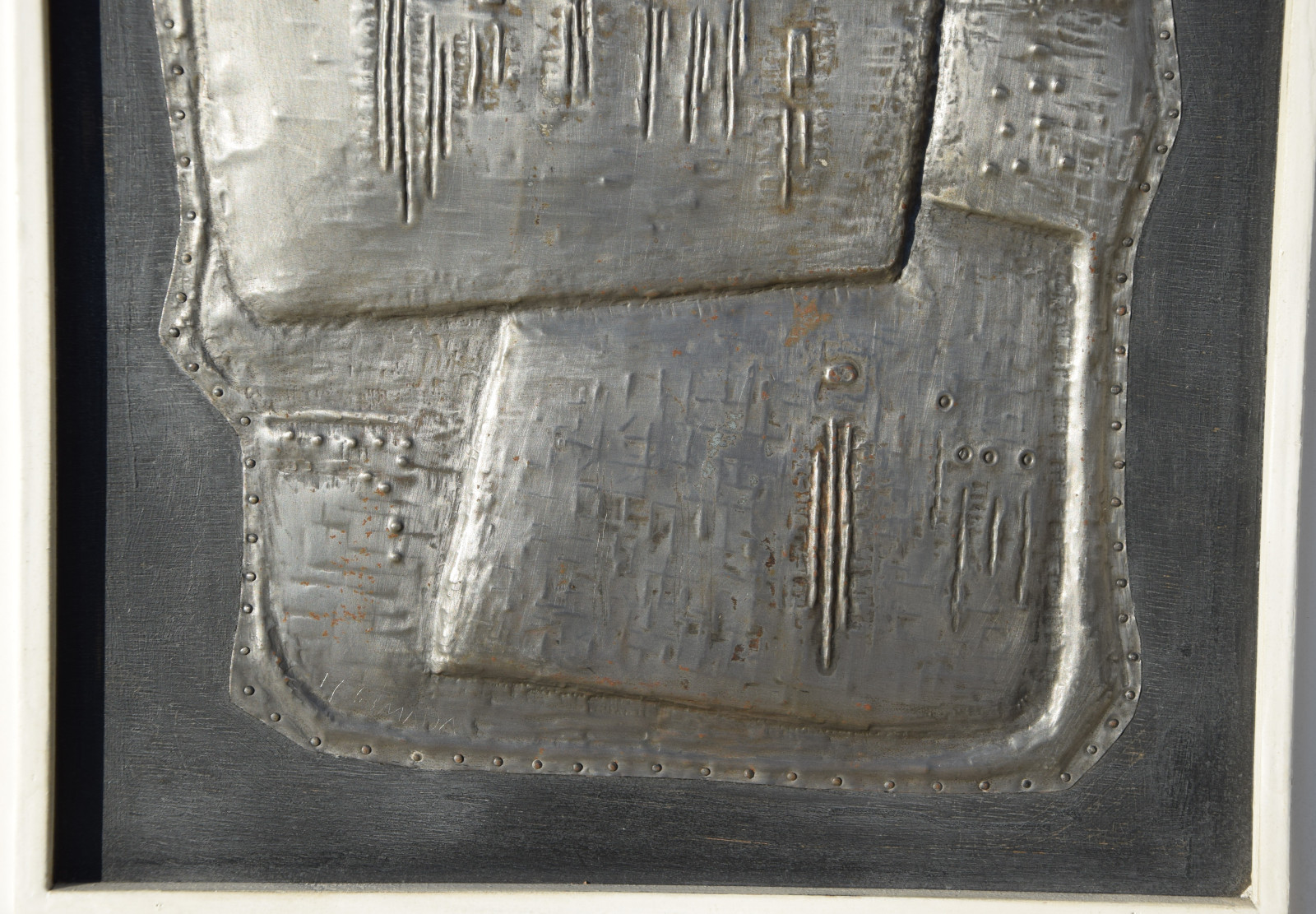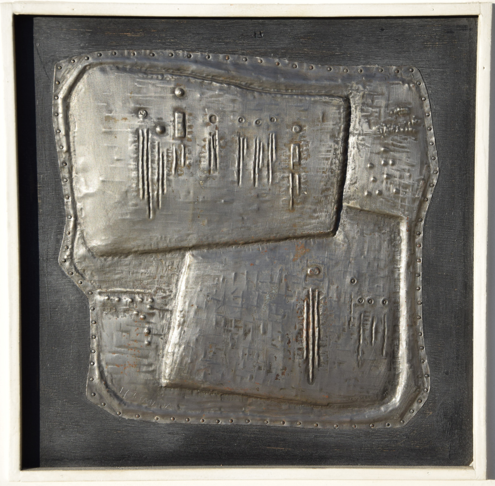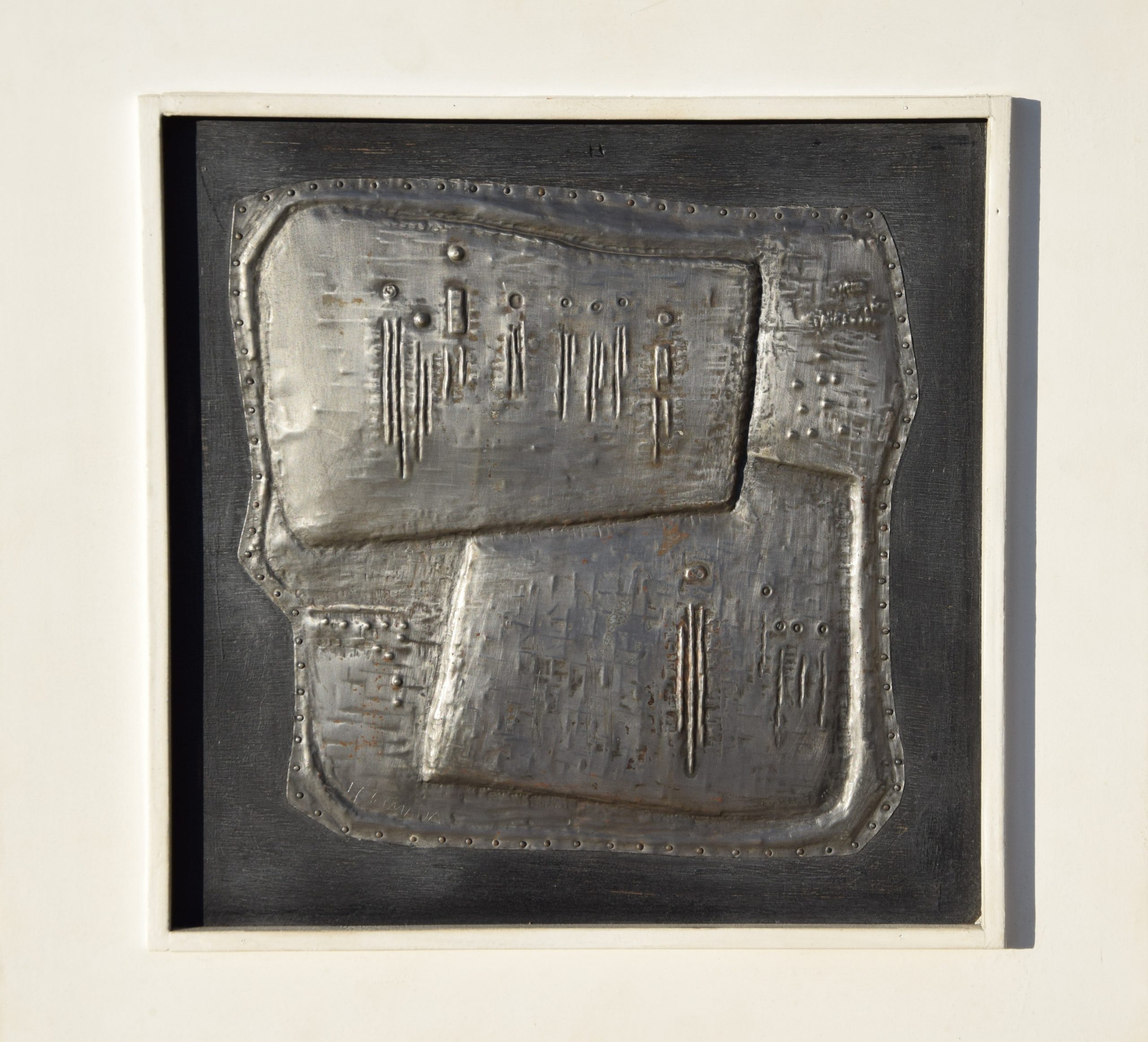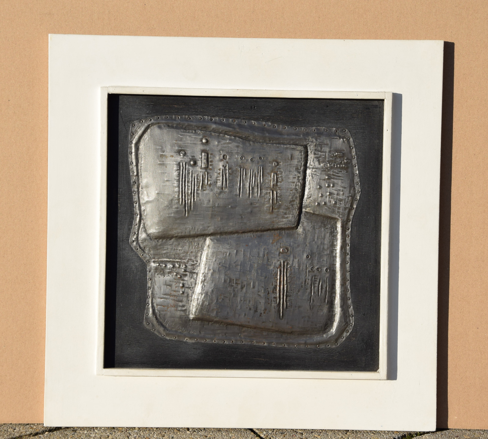 Metallrelief auf Holzplatte, gerahmt [Originalrahmen]