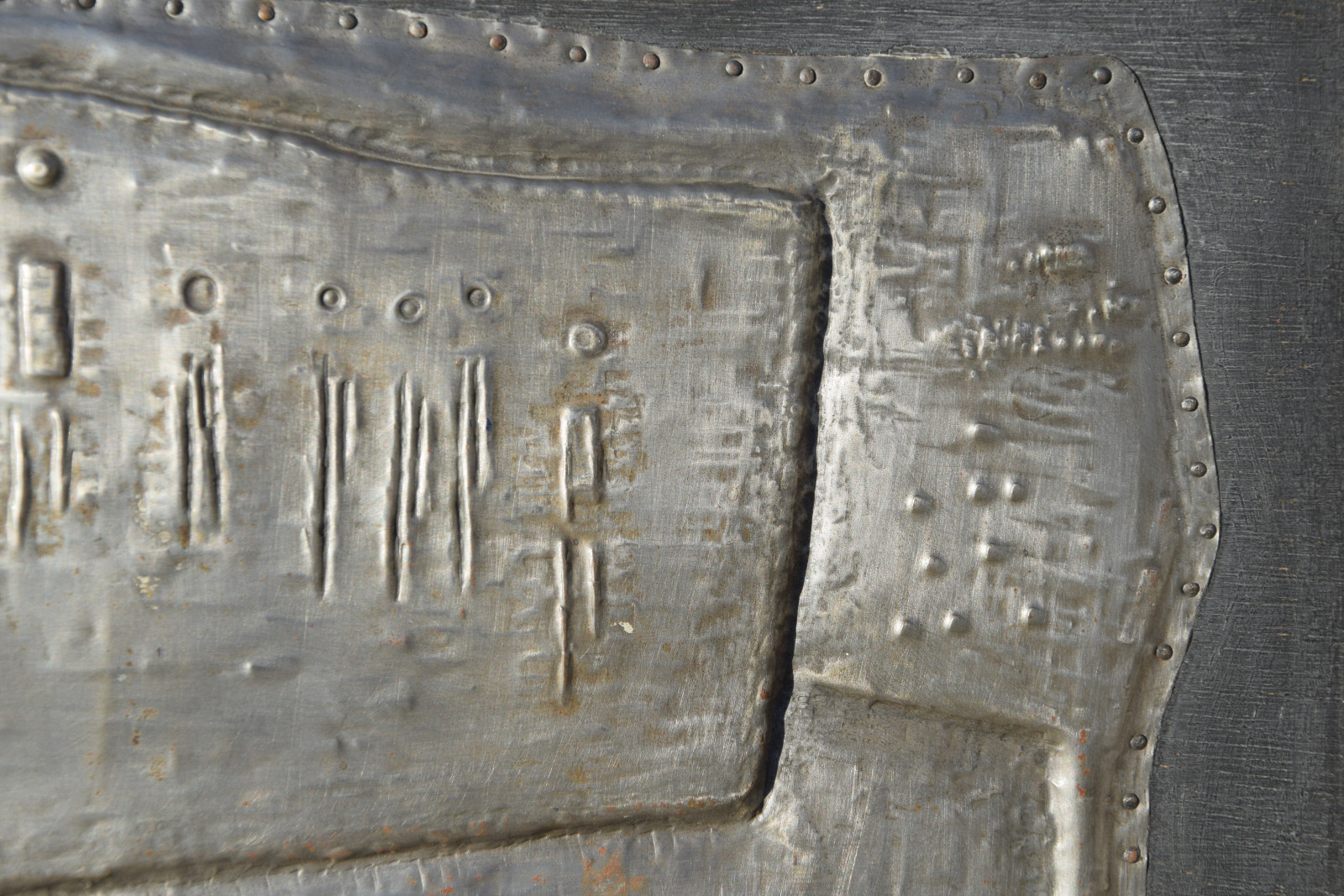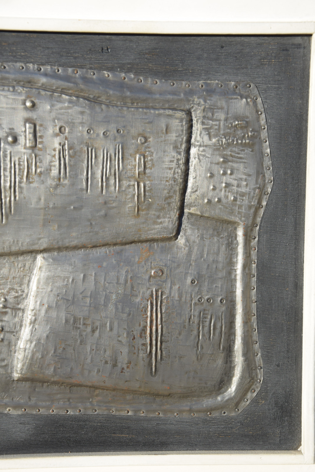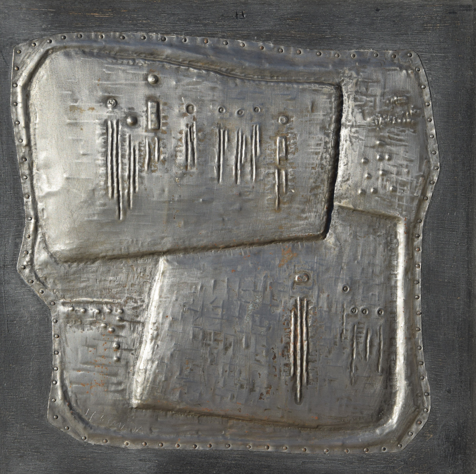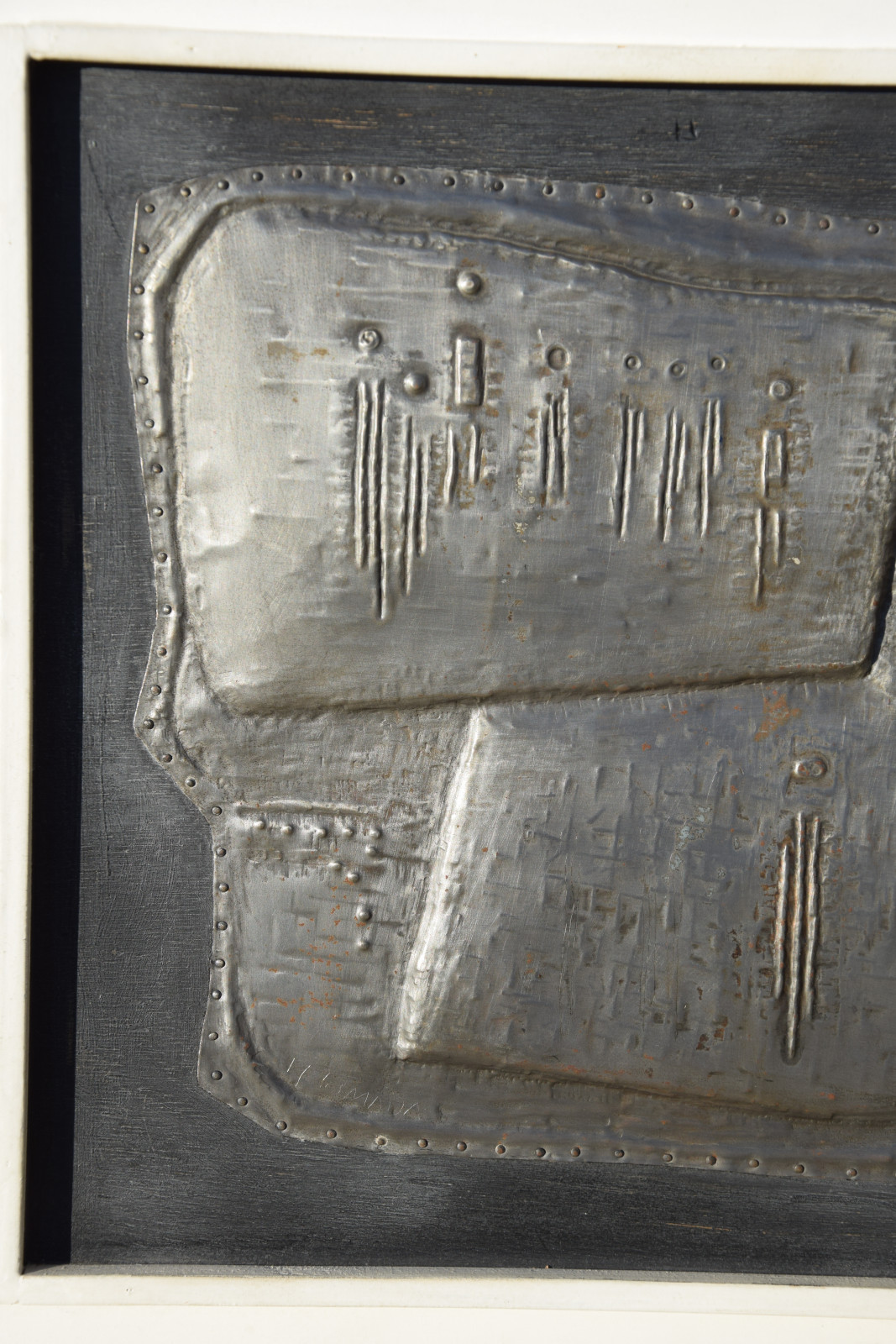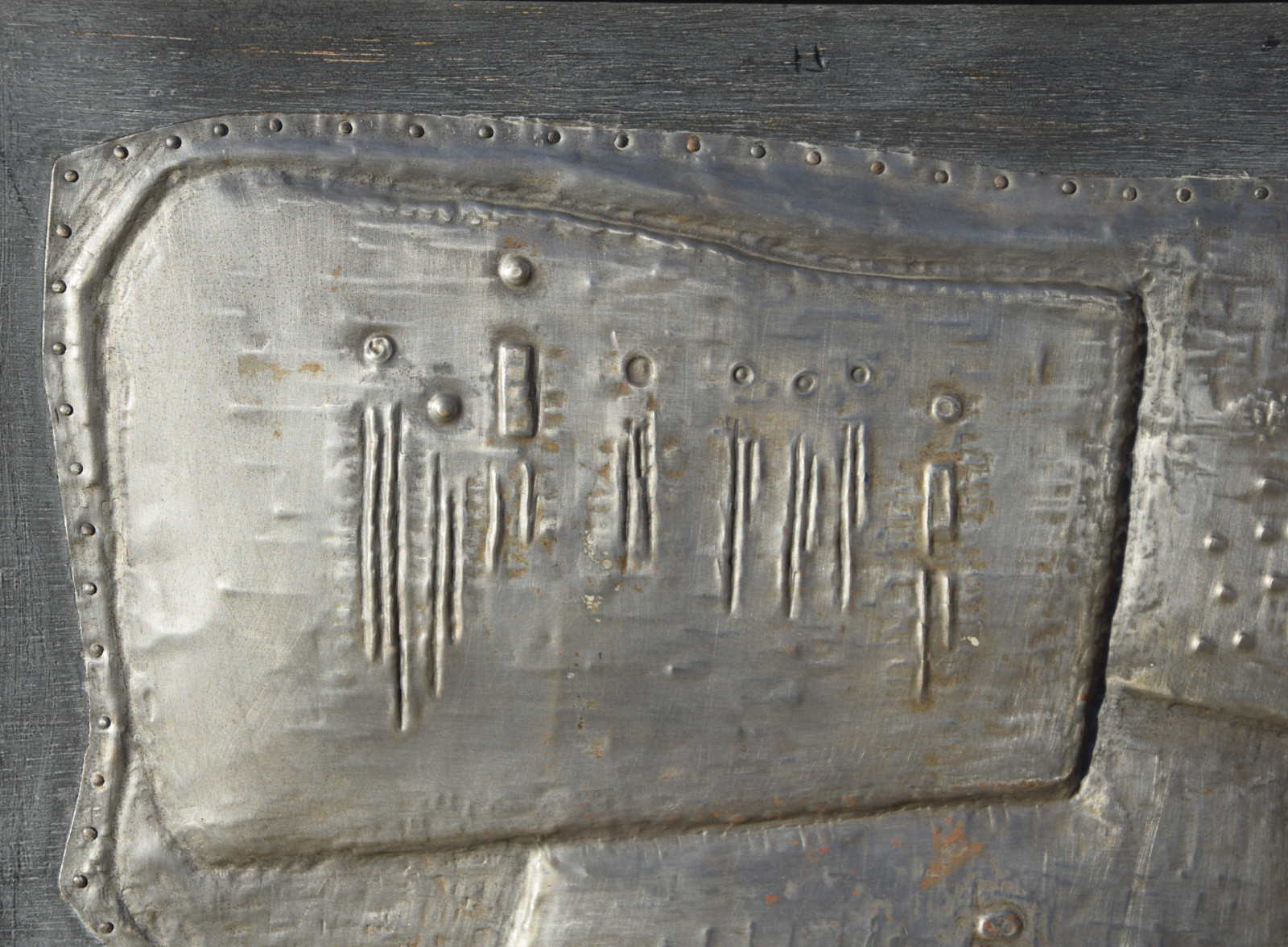 Metallrelief auf Holzplatte, gerahmt [Originalrahmen]