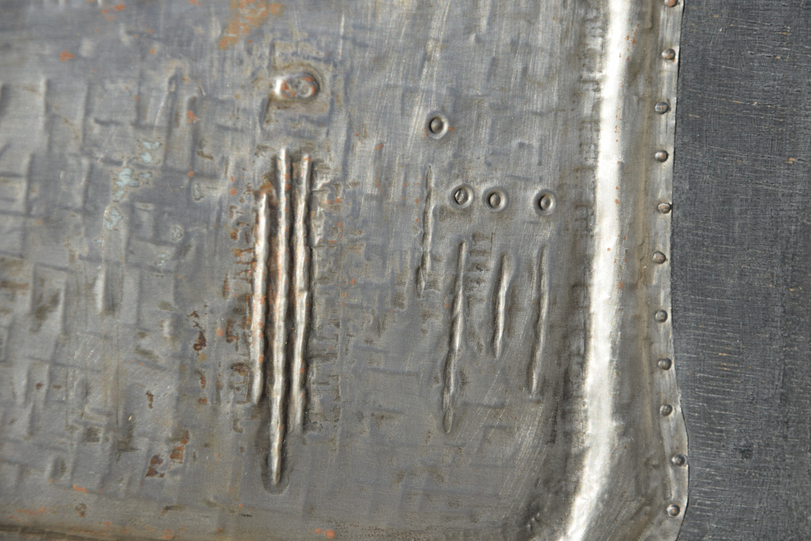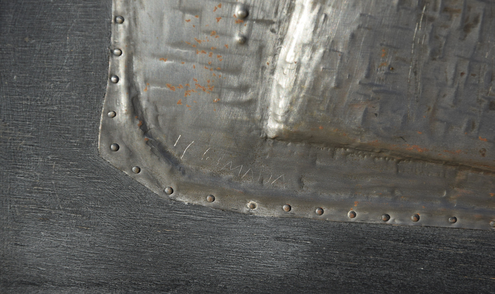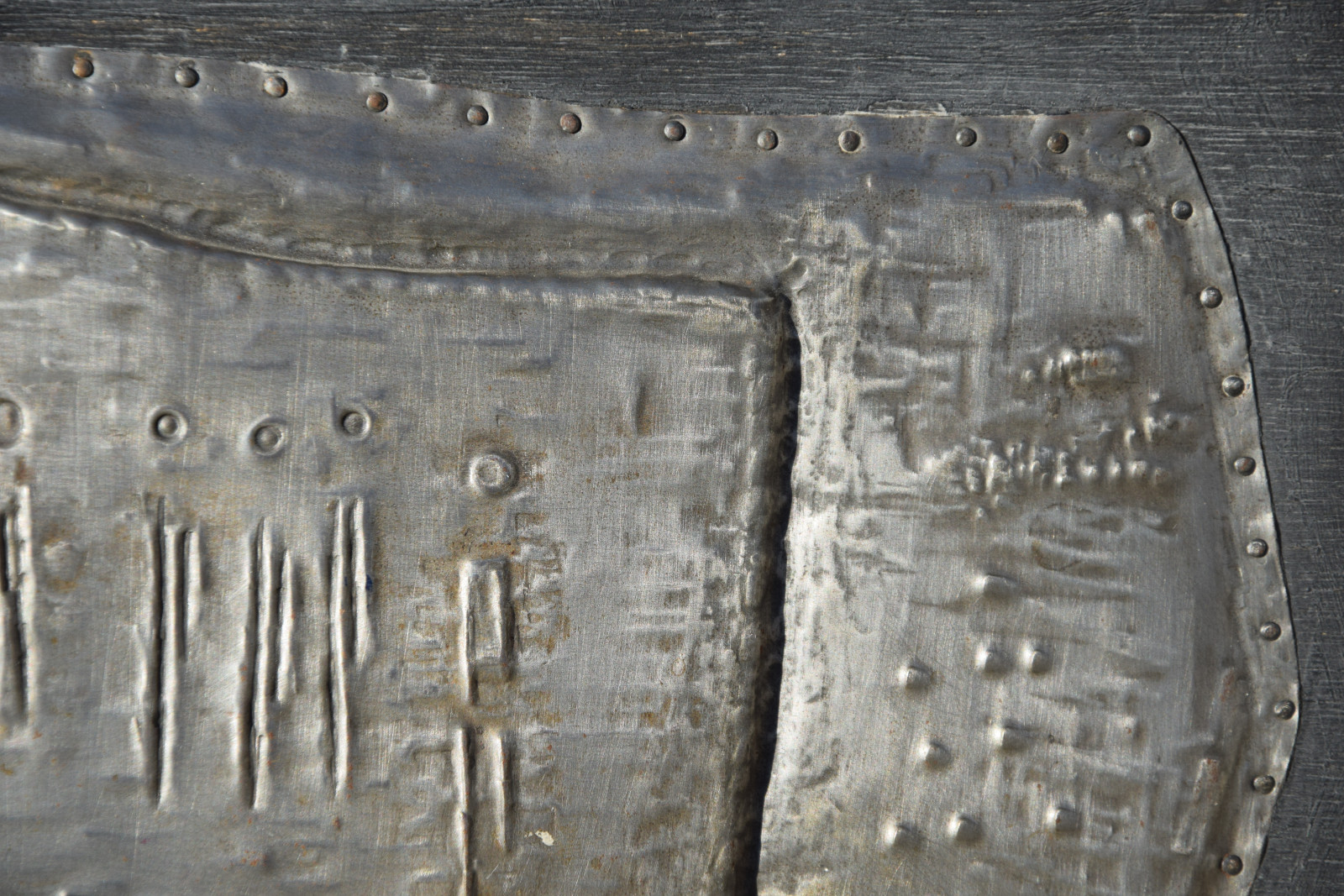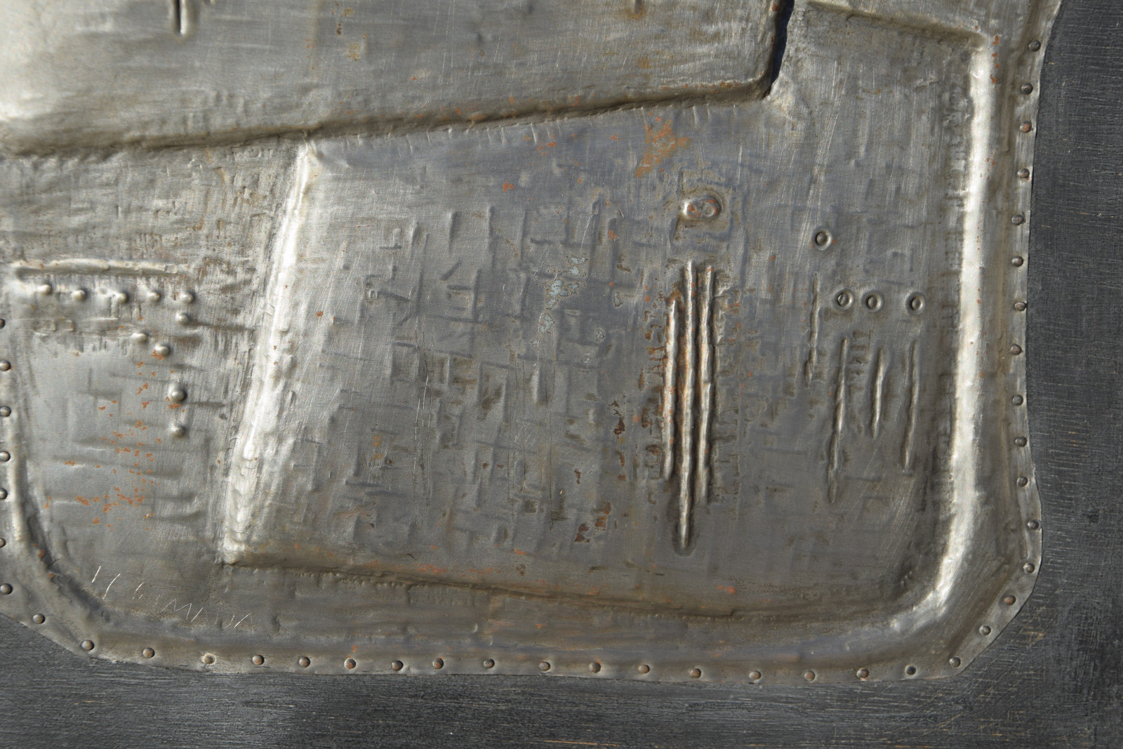 Metallrelief auf Holzplatte, gerahmt [Originalrahmen]