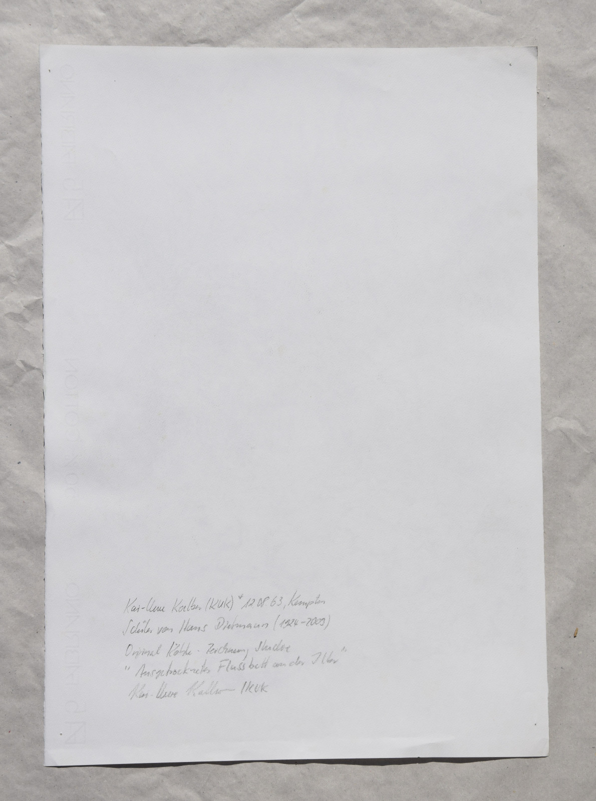 „Ausgetrocknetes Flussbett an der Iller“ [so verso unten rechts betitelt]