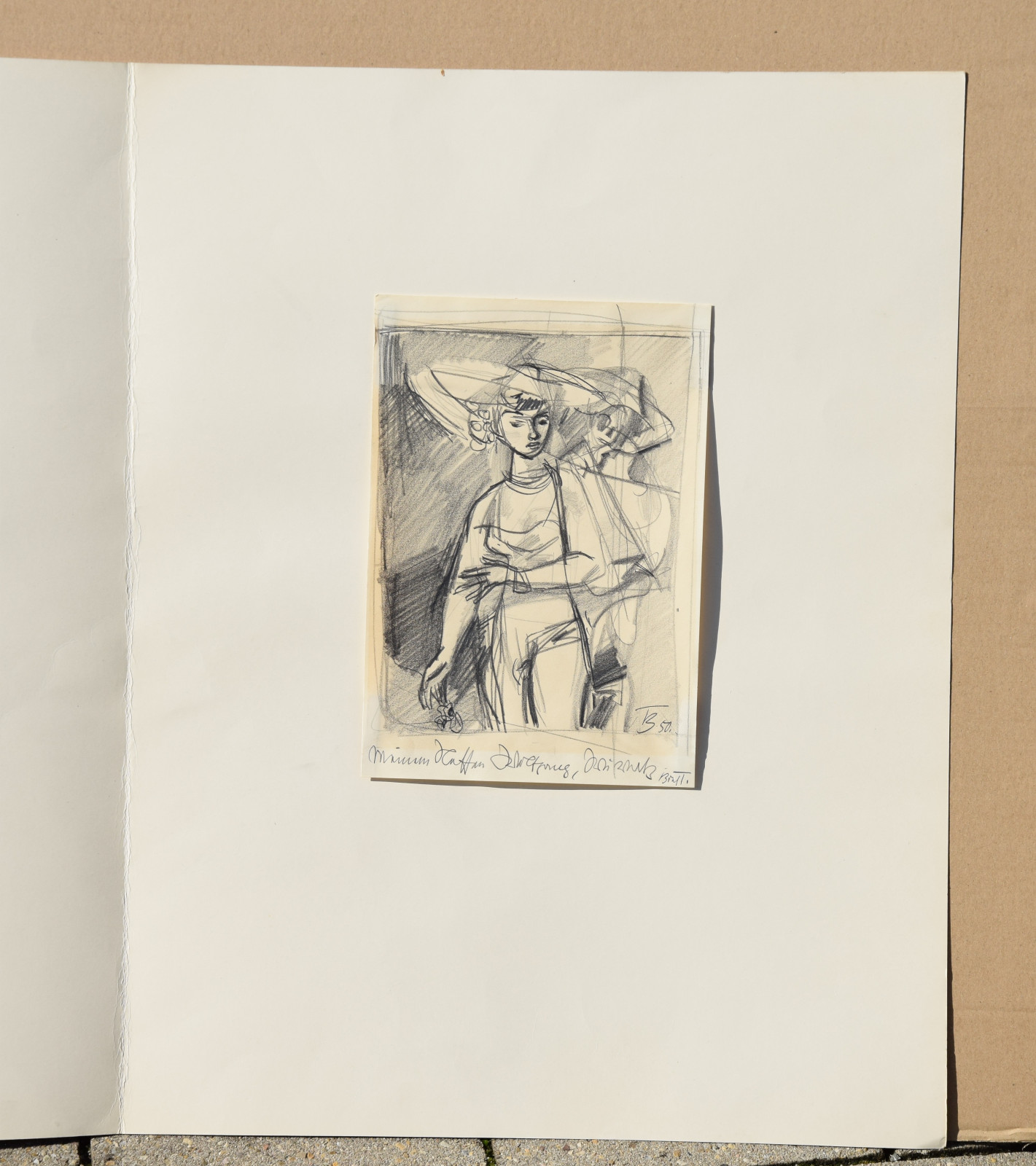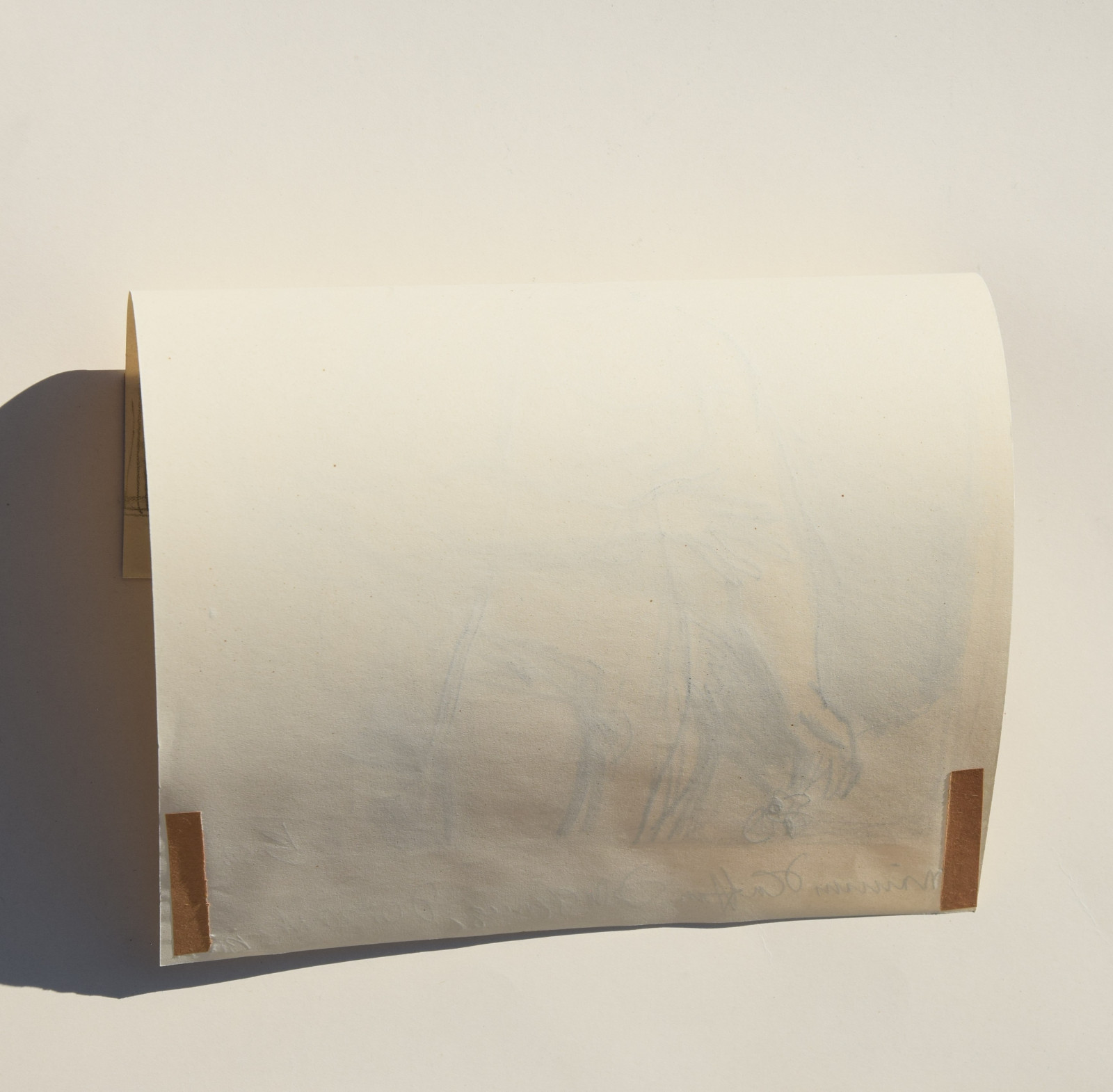 Bleistift auf Papier, verso am oberen Rand durch Klebestreifen in Passepartout gesetzt