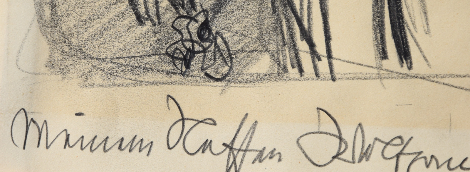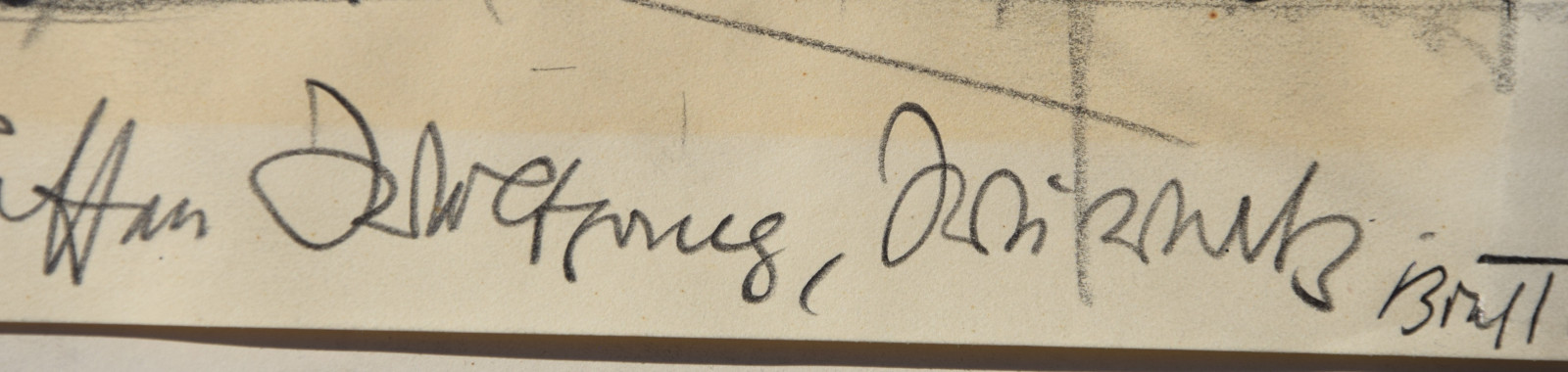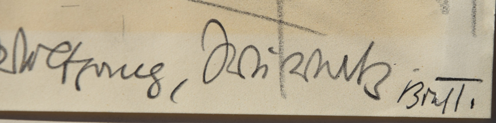 Am unteren Rand trägt die Zeichnung eine handschriftliche Widmung des Künstlers (“Meinem Neffen Wolfgang”), was der Komposition zudem einen sehr persönlichen Charakter verleiht.