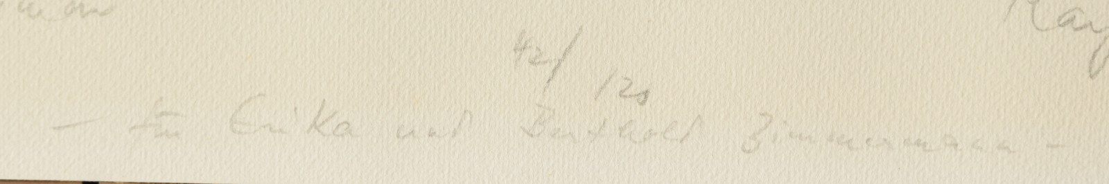 [In seiner Amtszeit (1971-88) setzte sich Zimmermann stark für das dortige Kulturleben ein. So war er maßgeblich an der Etablierung der örtlichen Gemäldegalerie beteiligt, unter seiner Federführung wurden das Badische Bäckerei-Museum, das Deutsche Zuckerbäcker-Museum und auch das Heimatmuseum eröffnet. Dass er sich auch für die in der Region lebenden Künstler einsetzte, zeigt diese Widmung Margarethe Kriegers.]