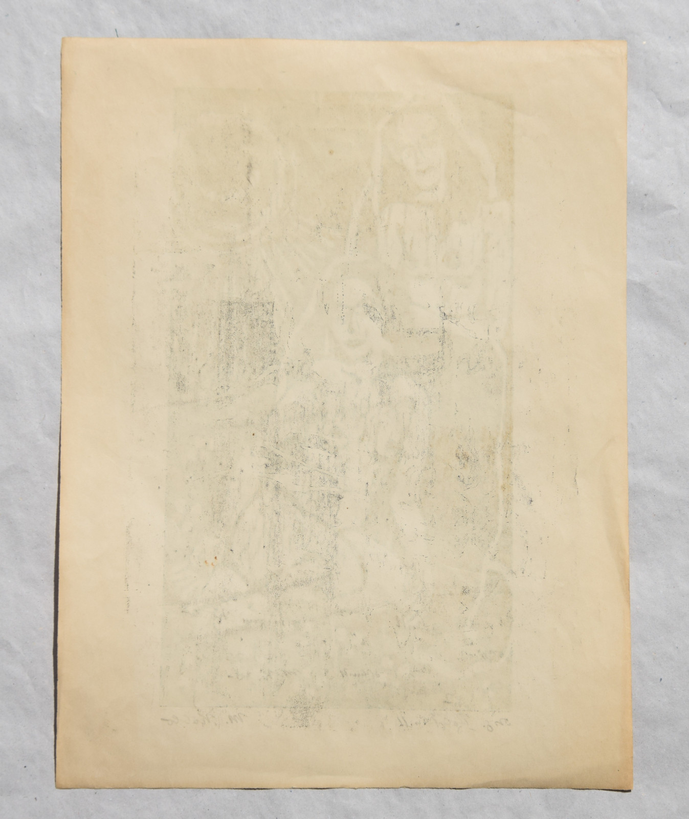 in den Randbereichen leicht knittrig und etwas bestoßen, sowie etwas nachgedunkelt; Ecken etwas bestoßen; leichte Druckstellen im Blatt; verso etwas fleckig
