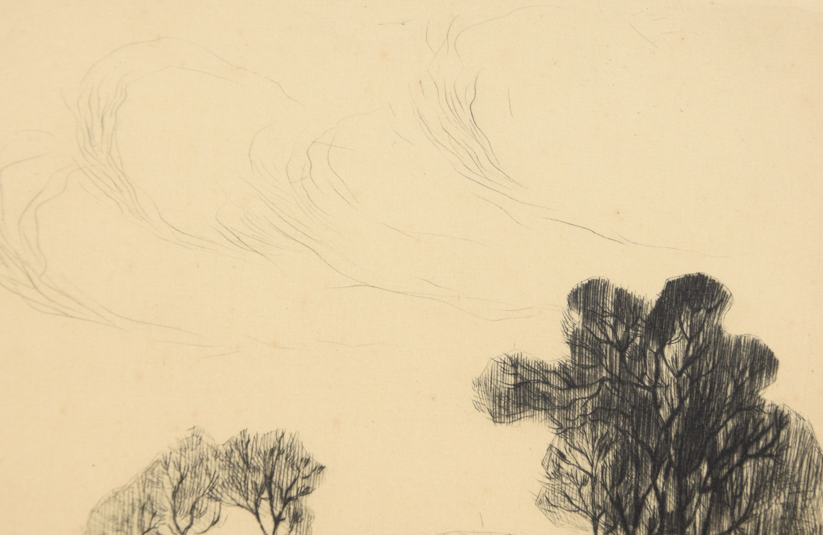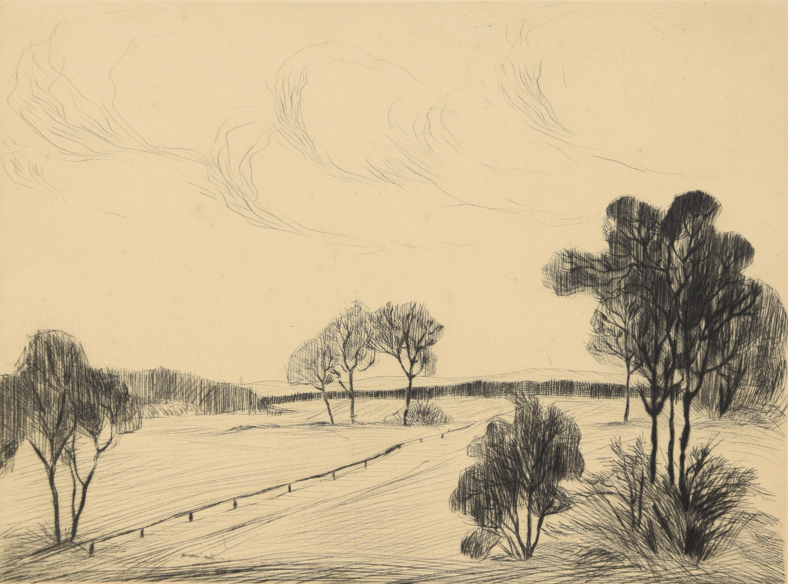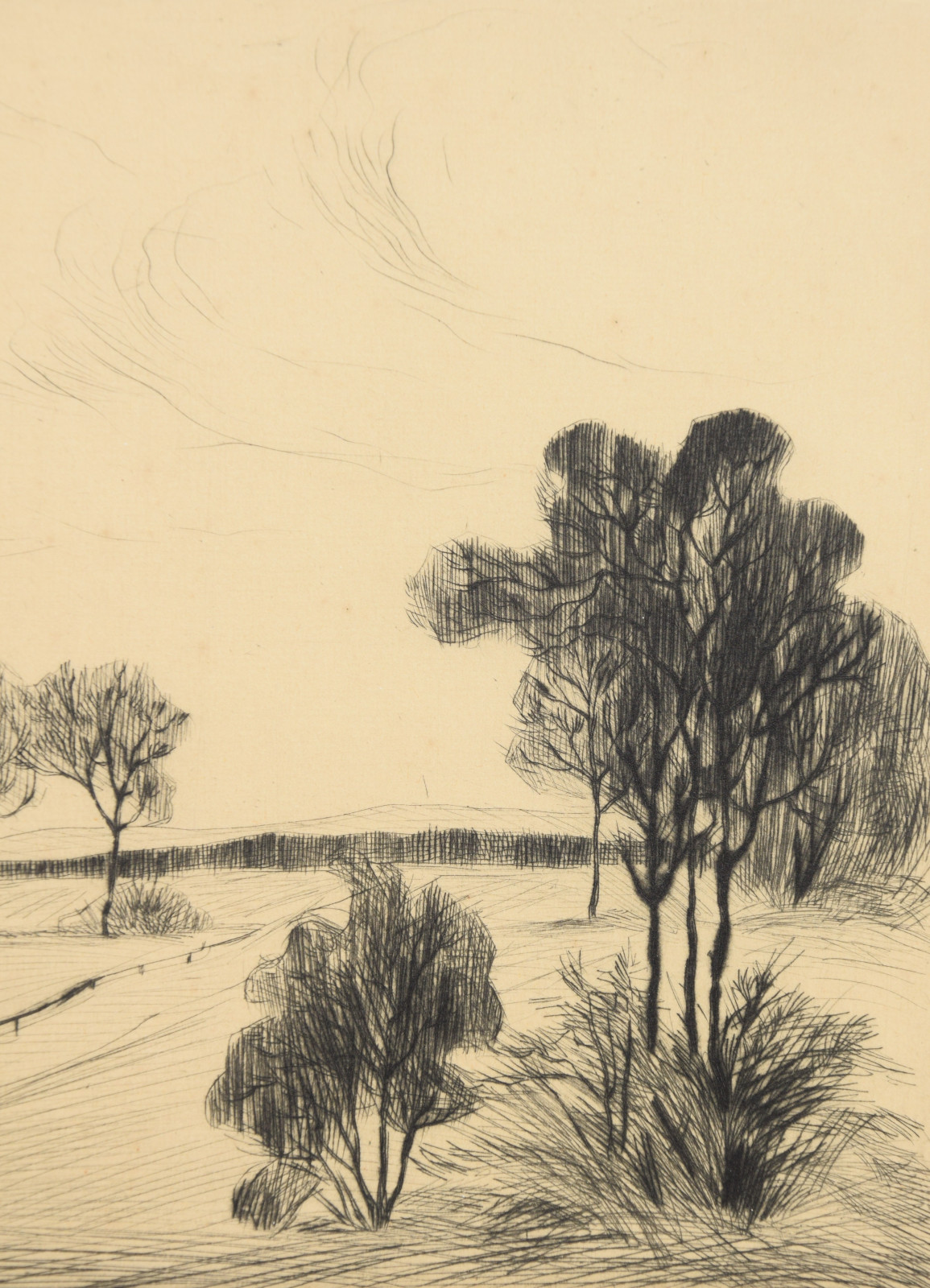 ohne Titel [weite Landschaft mit Weiden und Baumgruppen]
