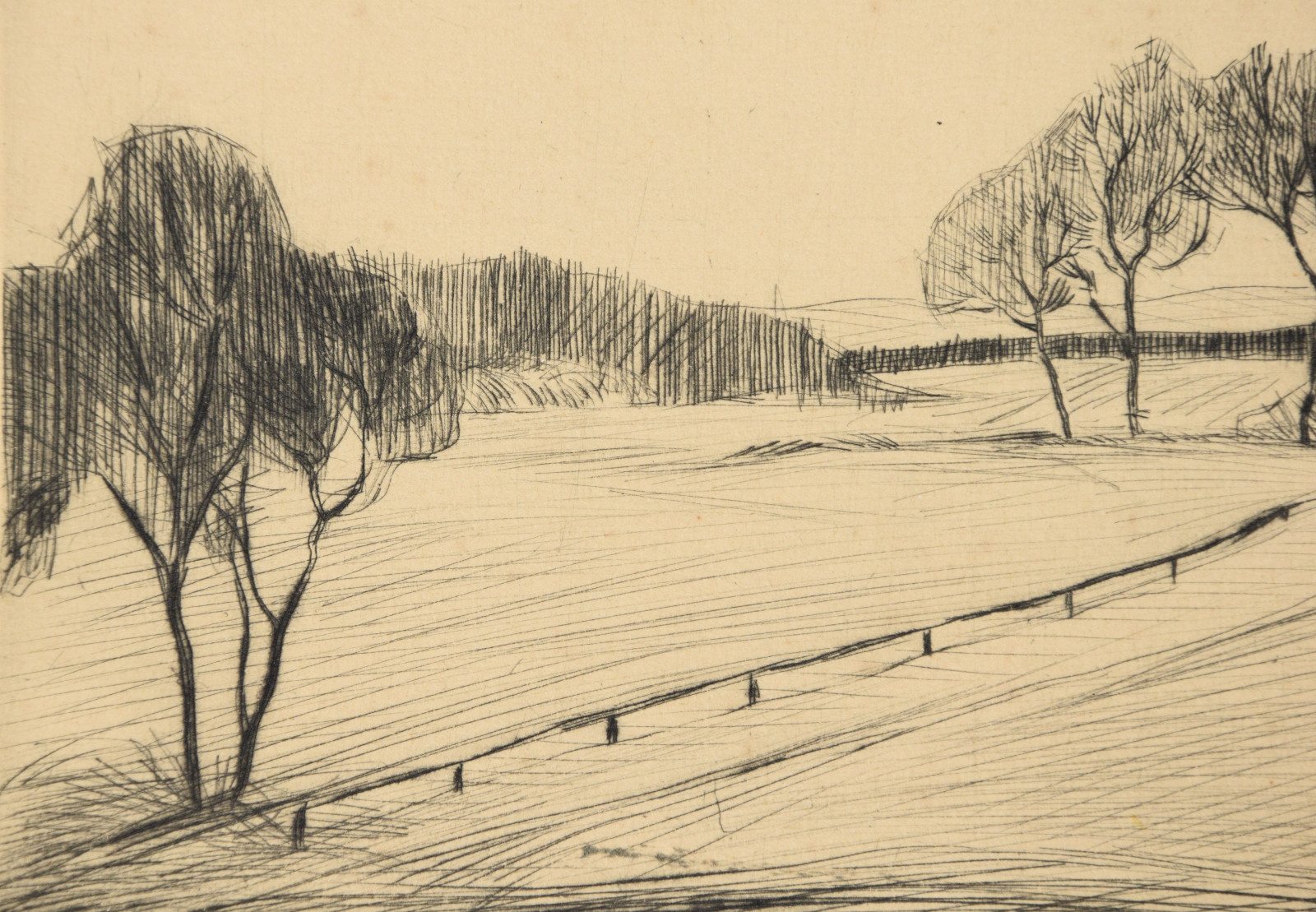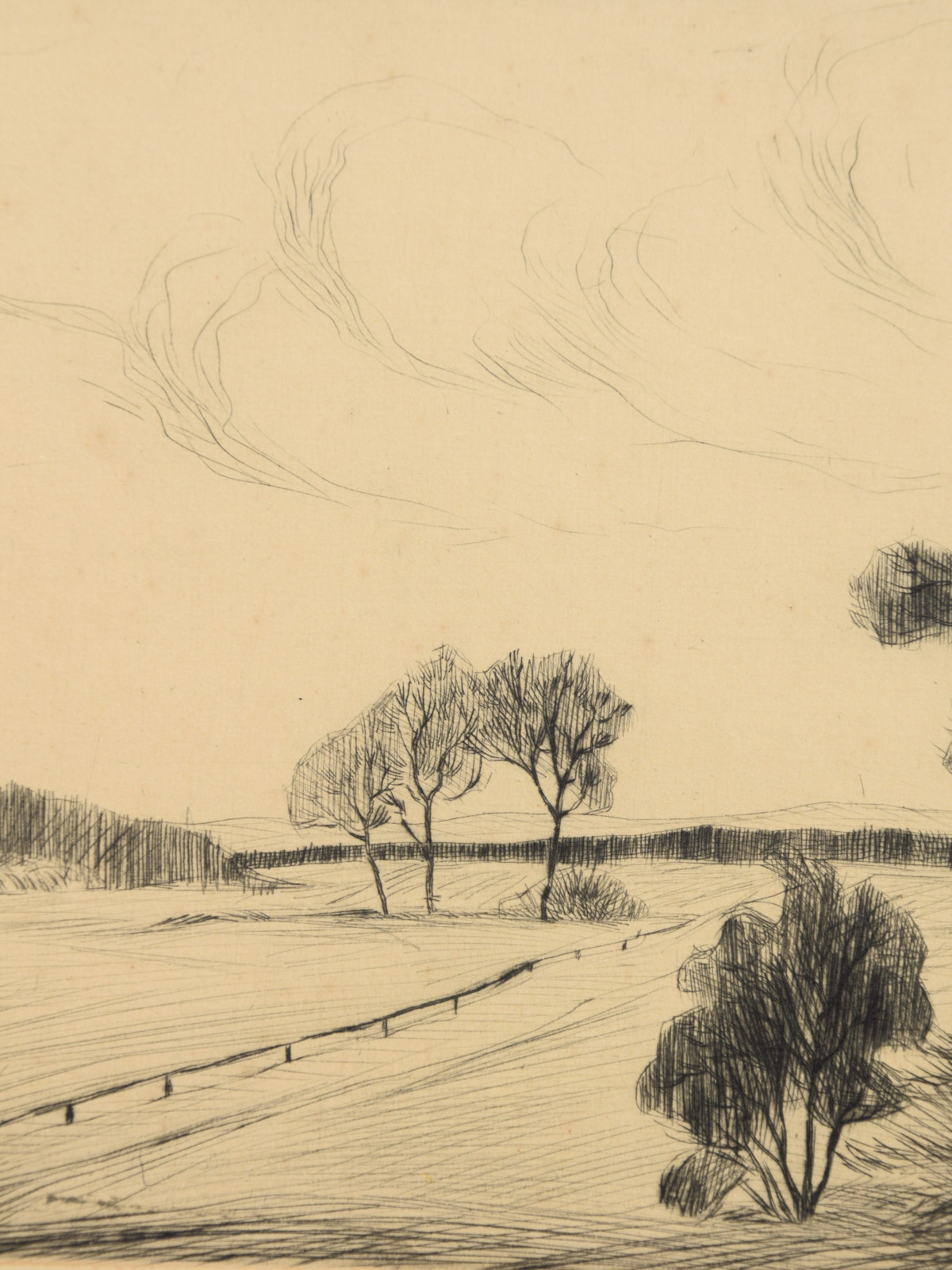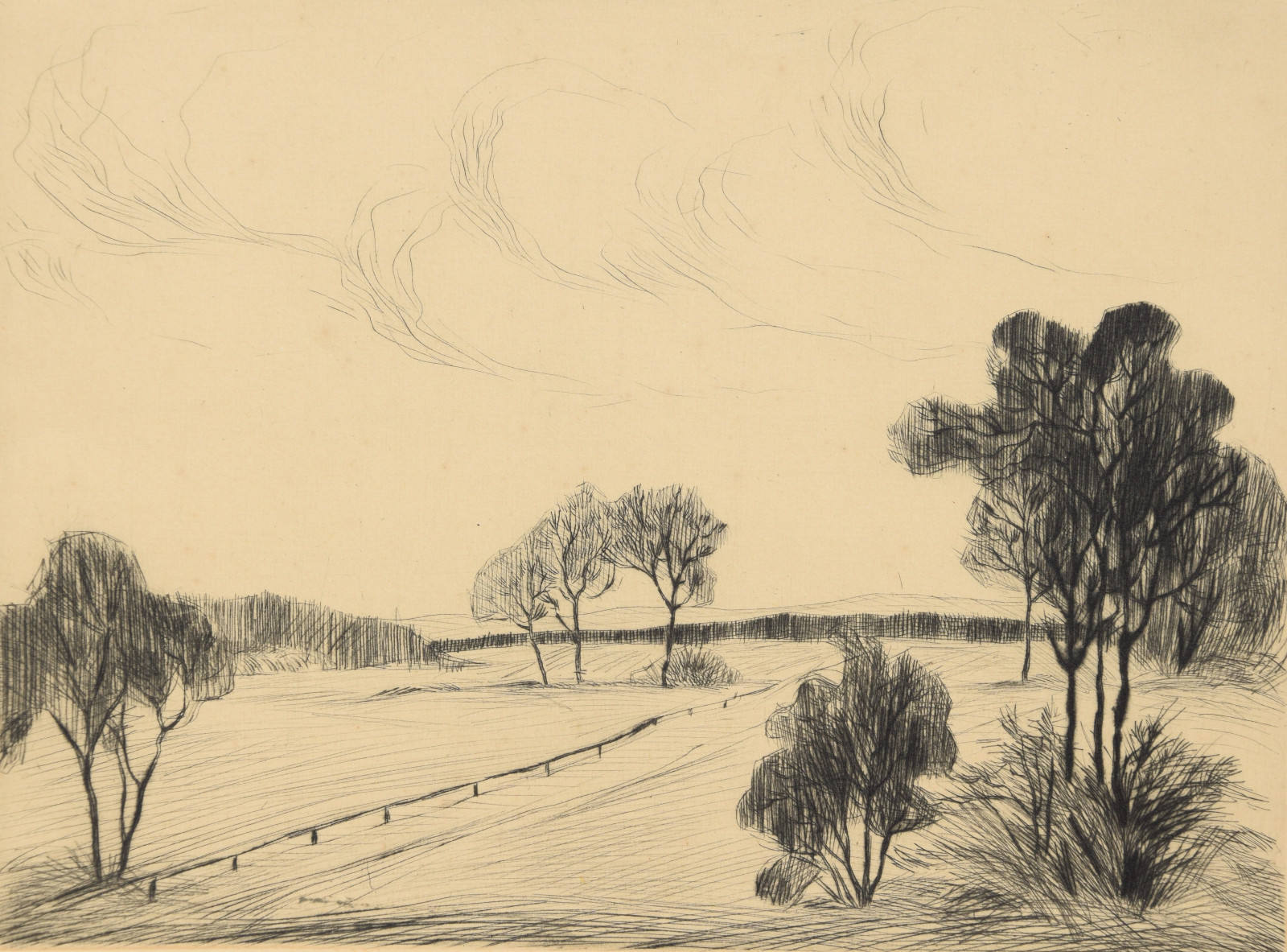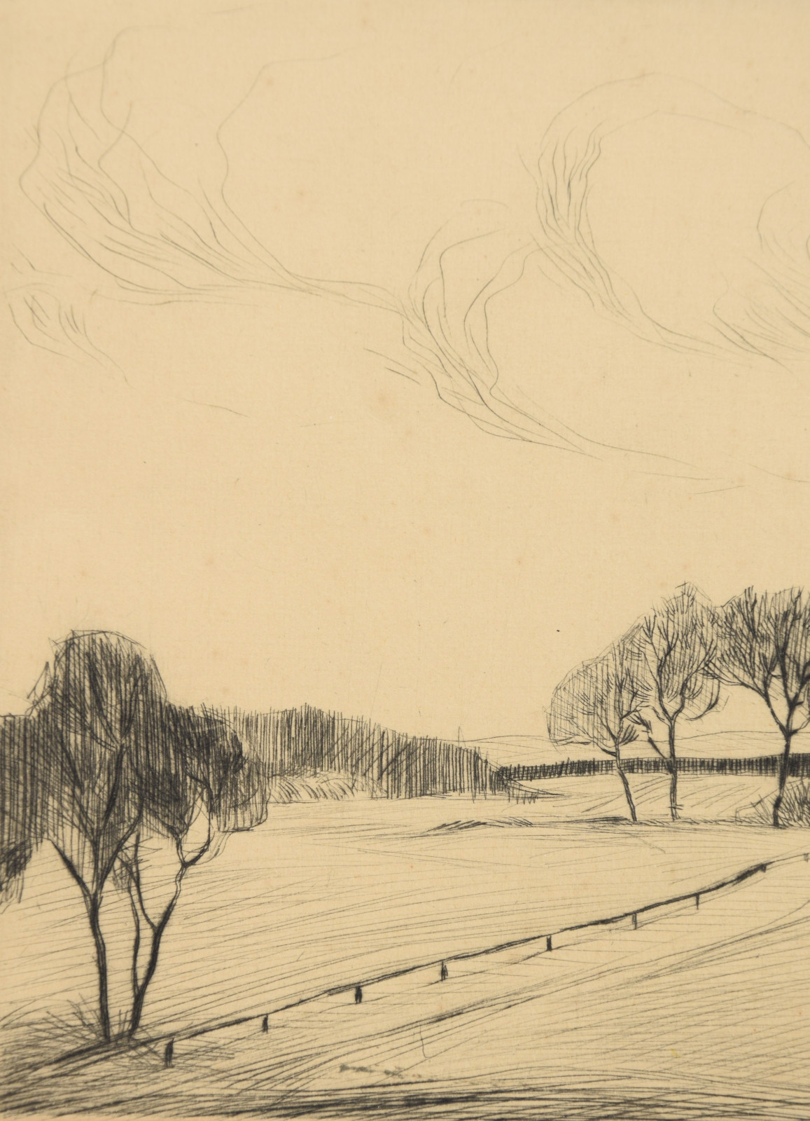 ohne Titel [weite Landschaft mit Weiden und Baumgruppen]
