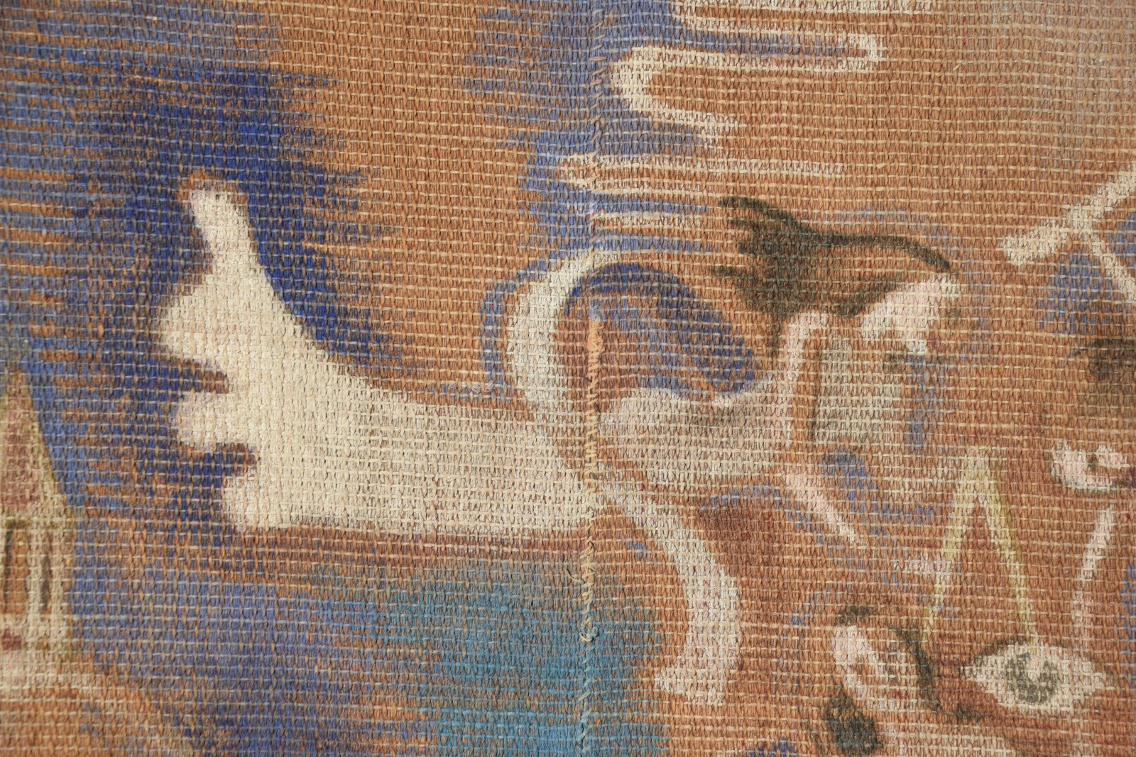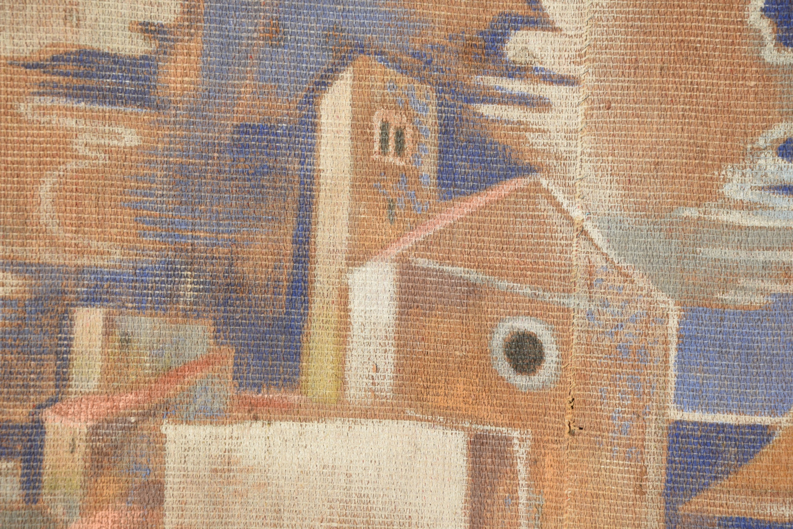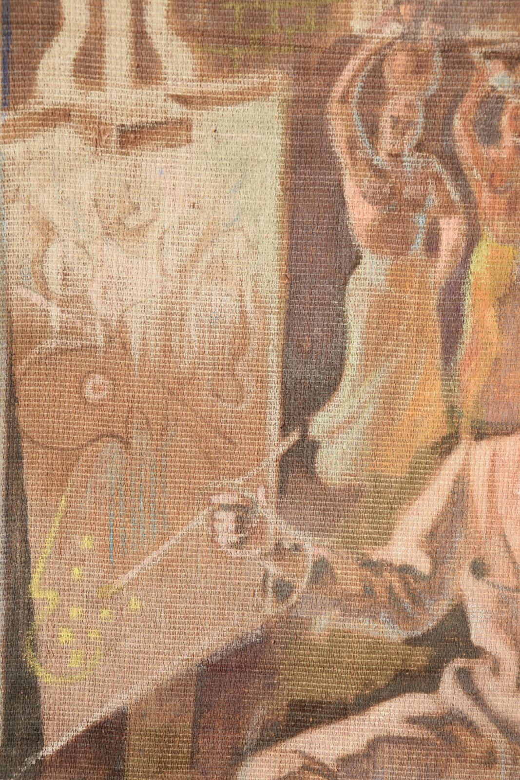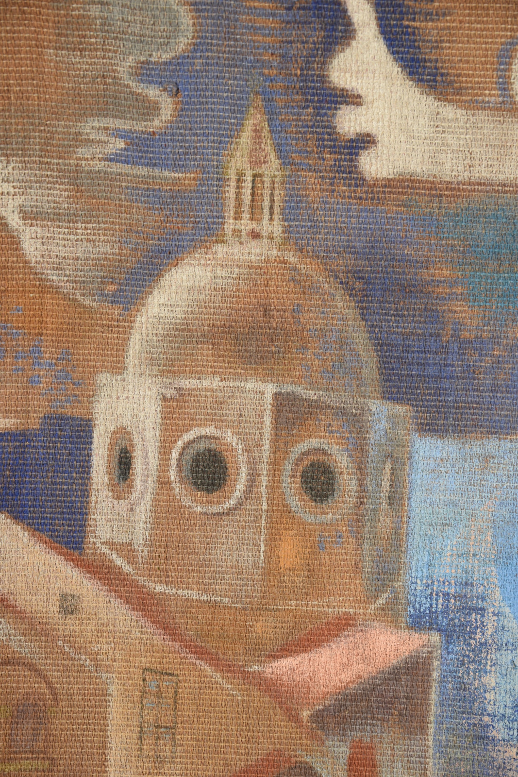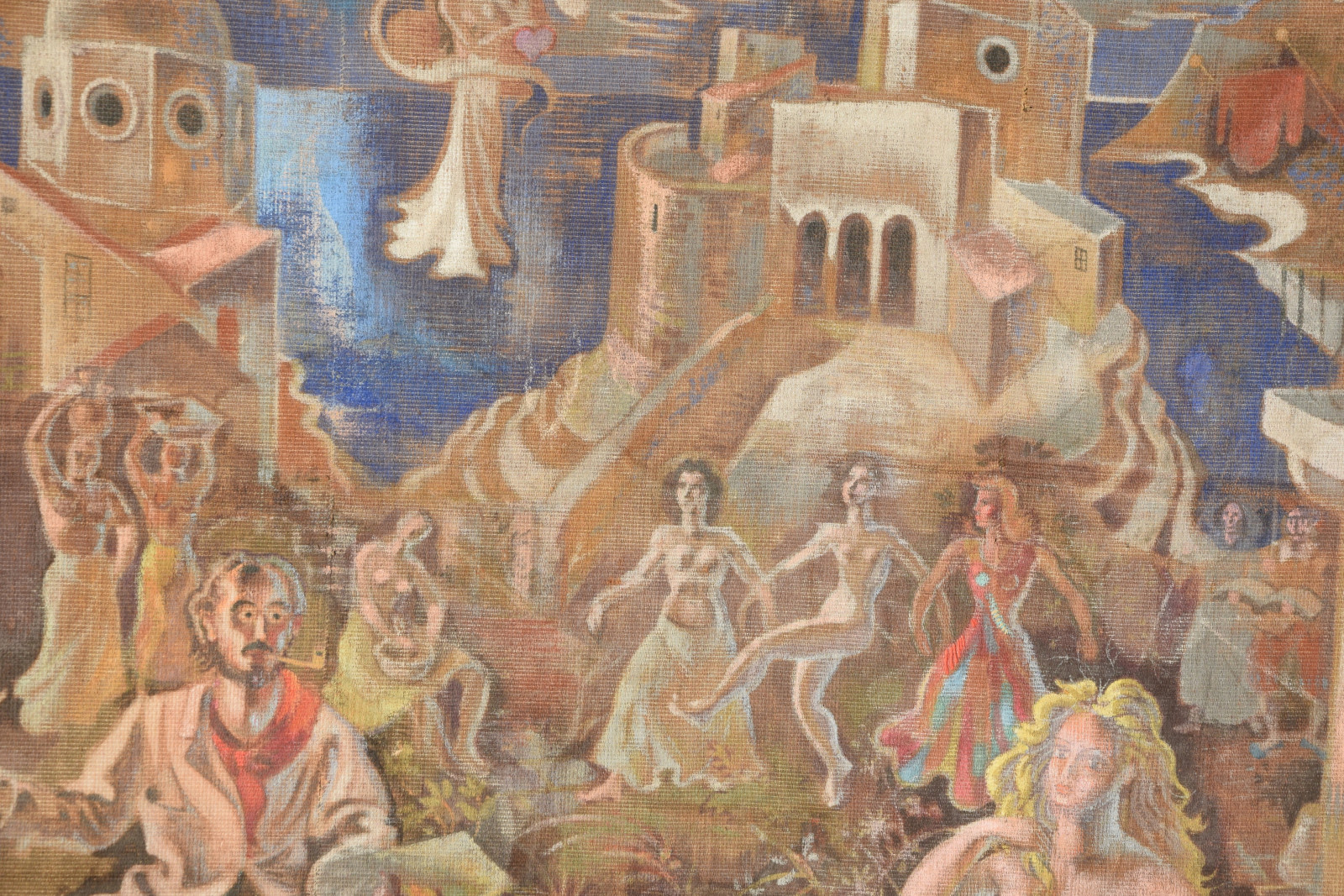 großformatige Tapisserie mit einem surreal träumerischen Motiv in mediterraner Szenerie