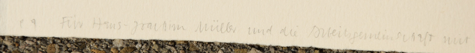 unten links in Blei vom Künstler gewidmet an Hans-Joachim Müller (1925 Dresden – ?):