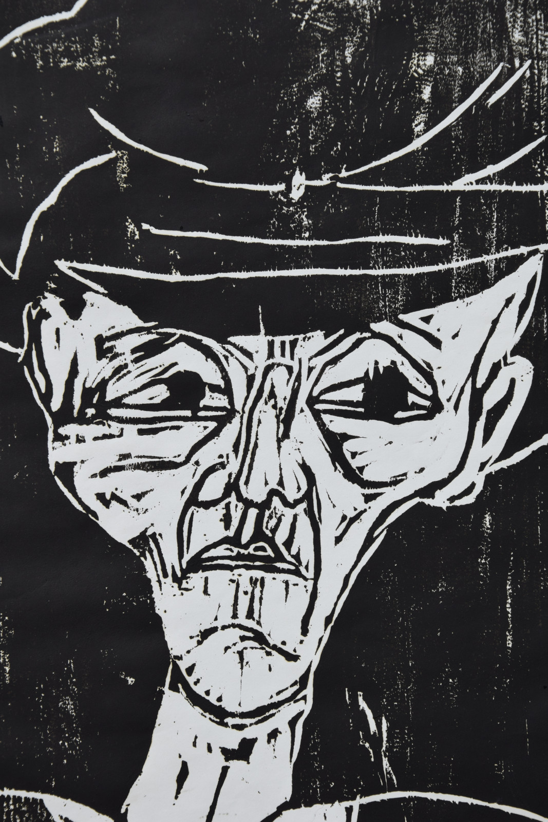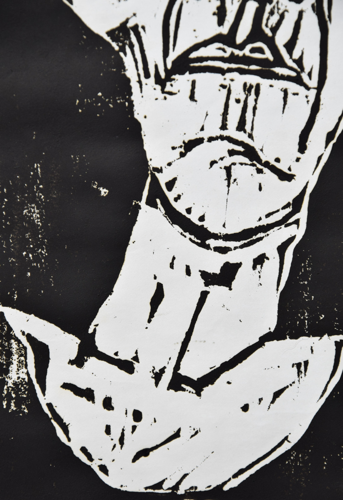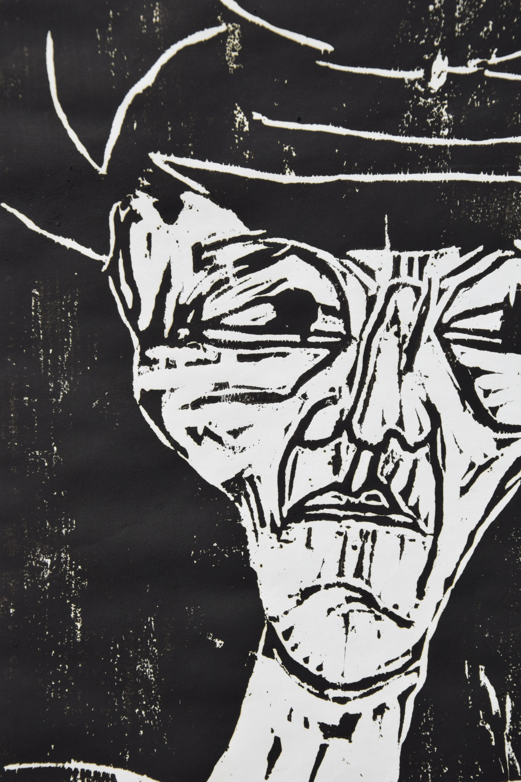 Der hier vorliegende Linolschnitt wird ebenso in dieser nachweisbaren Zeit Walter Hehns entstanden sein. Ganz dezidiert greift auch dieses Blatt ein politisches Thema auf: den sogenannten „Anschluss“ Österreichs an das Deutsche Reich im Jahre 1938. Womöglich könnte dies darauf verweisen, dass Hehn diese Mappe zum 30. Jahrestag 1968 schuf.