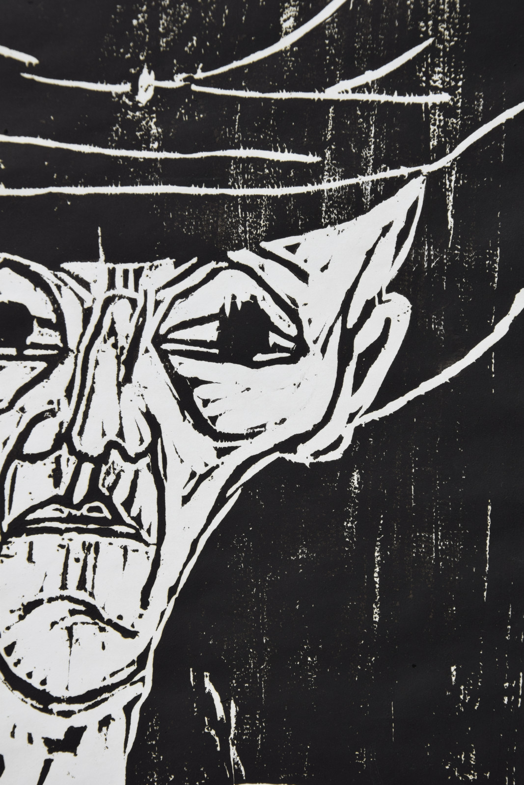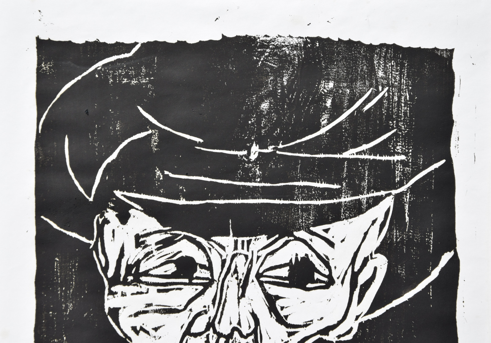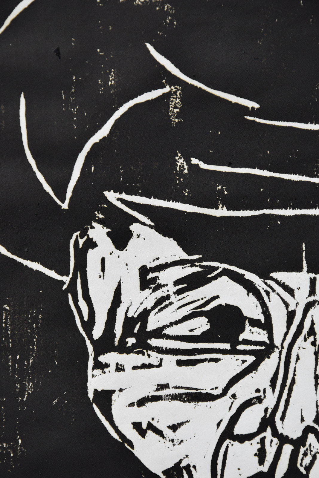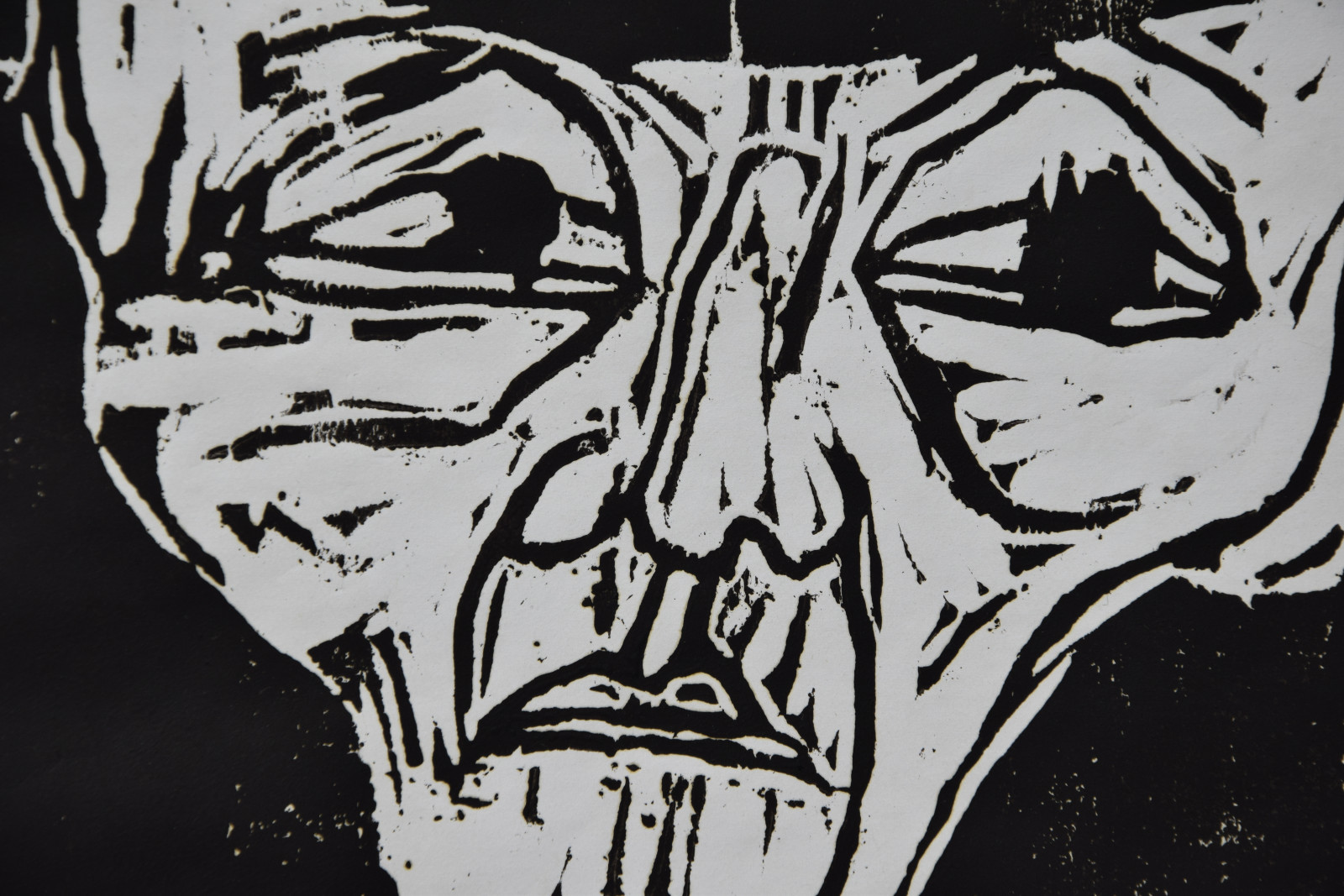 Der hier vorliegende Linolschnitt wird ebenso in dieser nachweisbaren Zeit Walter Hehns entstanden sein. Ganz dezidiert greift auch dieses Blatt ein politisches Thema auf: den sogenannten „Anschluss“ Österreichs an das Deutsche Reich im Jahre 1938. Womöglich könnte dies darauf verweisen, dass Hehn diese Mappe zum 30. Jahrestag 1968 schuf.