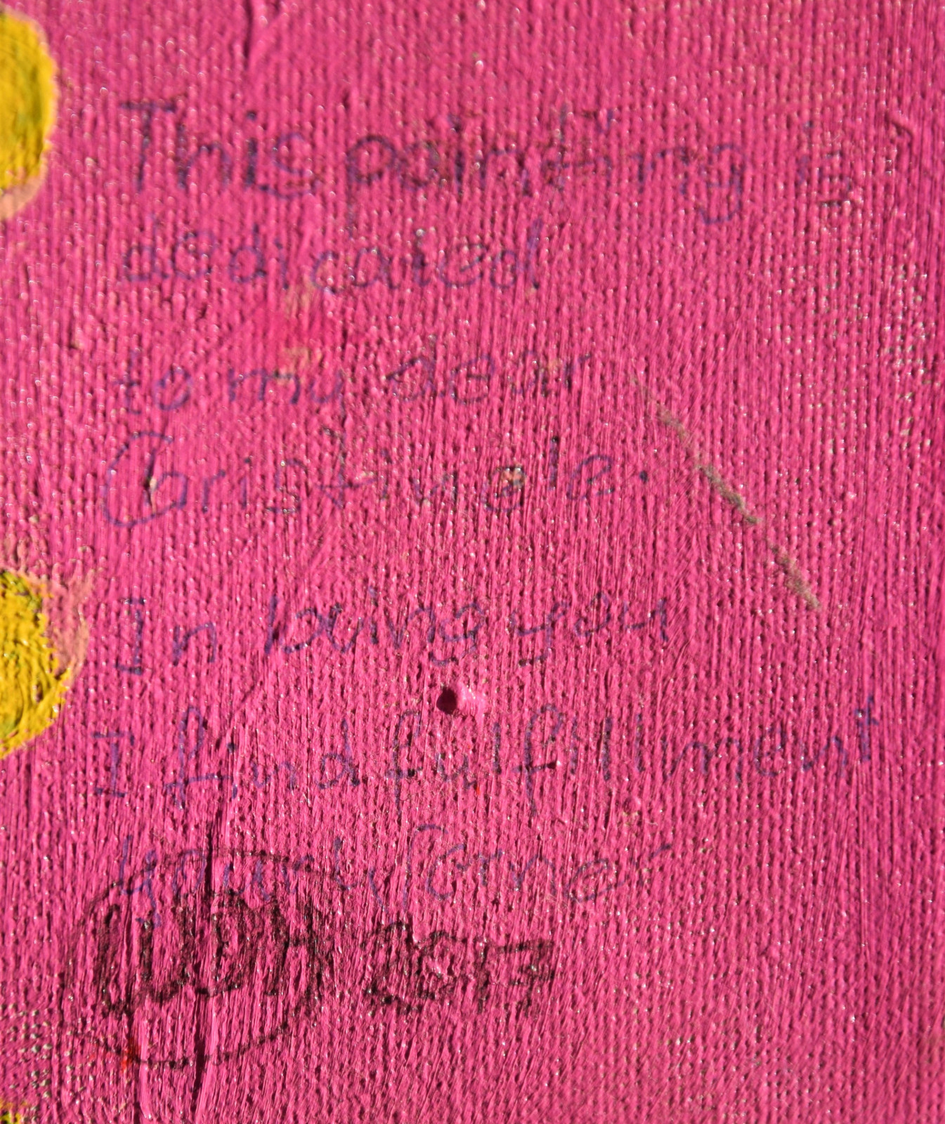 „This painting is dedicated to my dear Christinele / In being you I find fulfillment / your Werner“