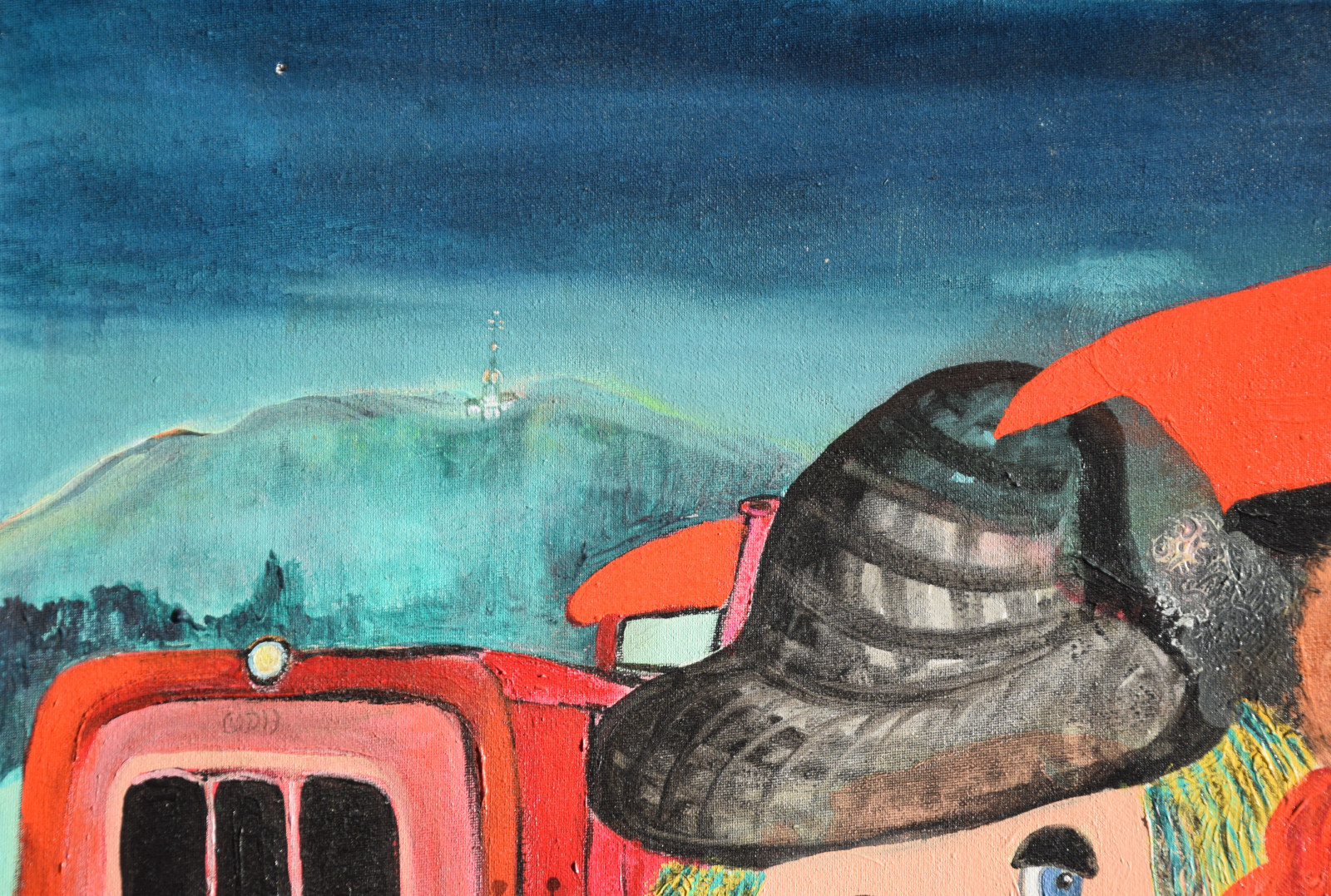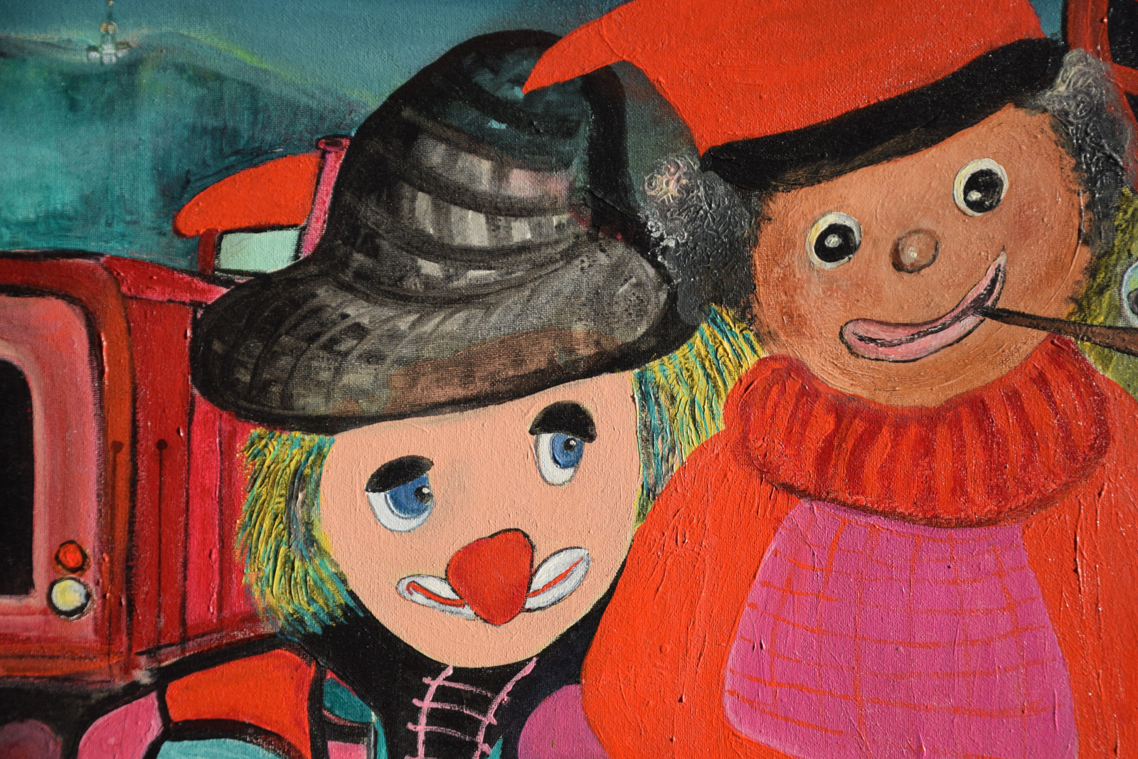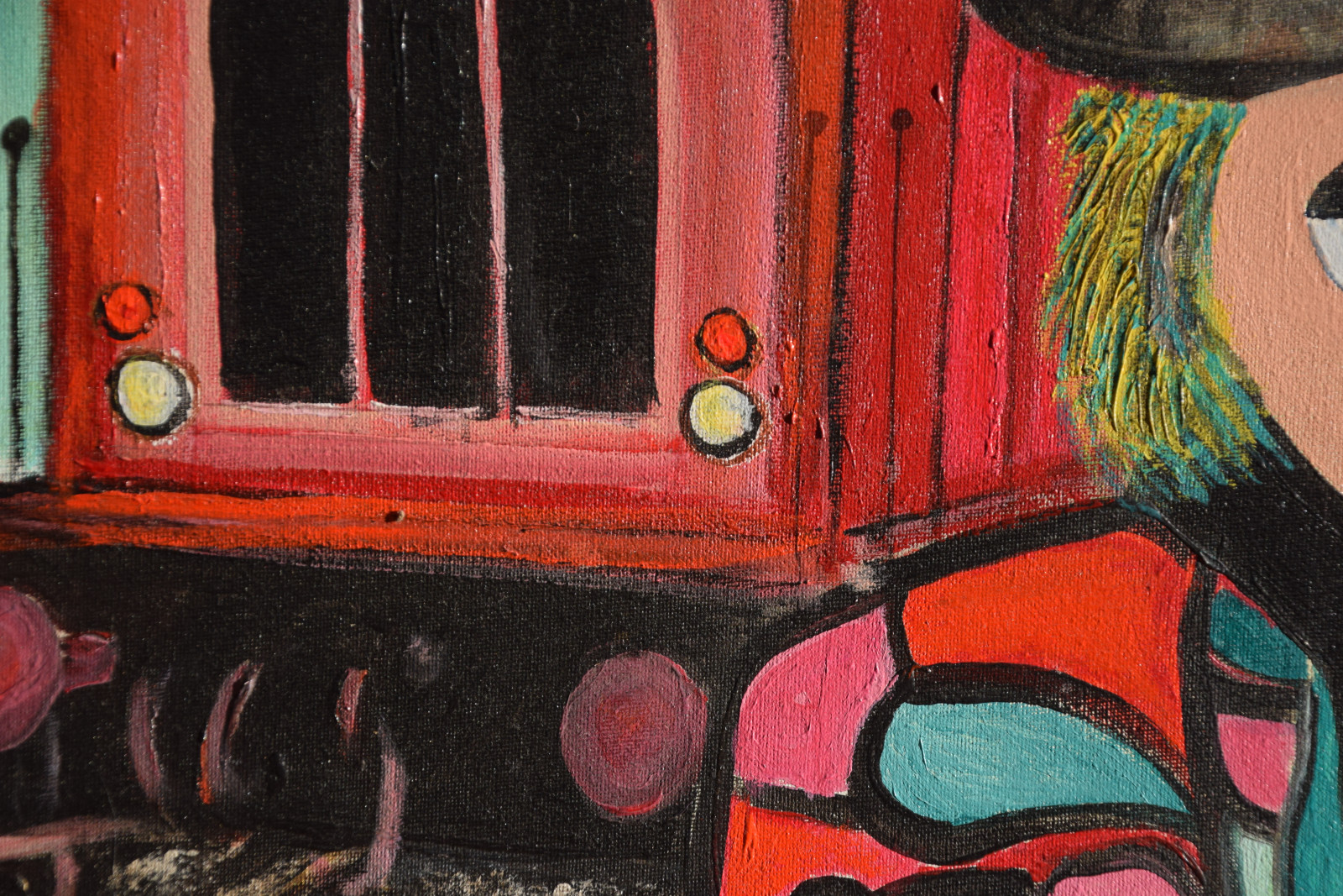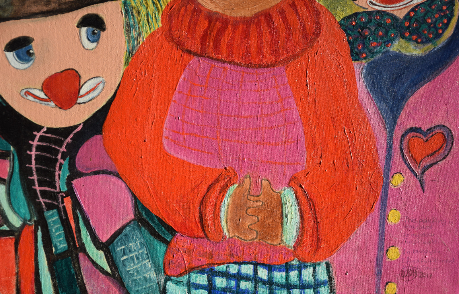 unten rechts monogrammiert „WDH“, sowie links mittig (auf der Eisenbahn) nochmals monogrammiert, sowie ebenso unten rechts am Ende der Widmung signiert „Werner“, sowie verso auf Etikett der „Querschnitt“-Jahresausstellung von 2017 mit Künstlernamen bezeichnet