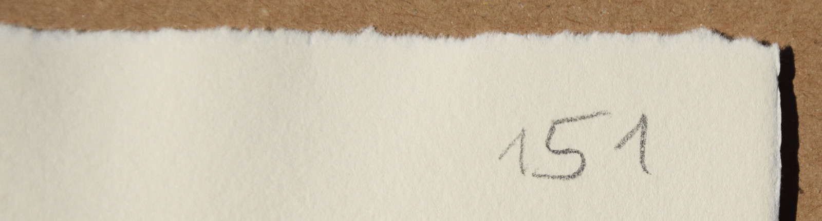 Ecken minimal bestoßen; die Blattränder mit leichten Abrissspuren; verso oben rechts in Blei nummeriert “151”; verso unten links in Blei bezeichnet / nummeriert