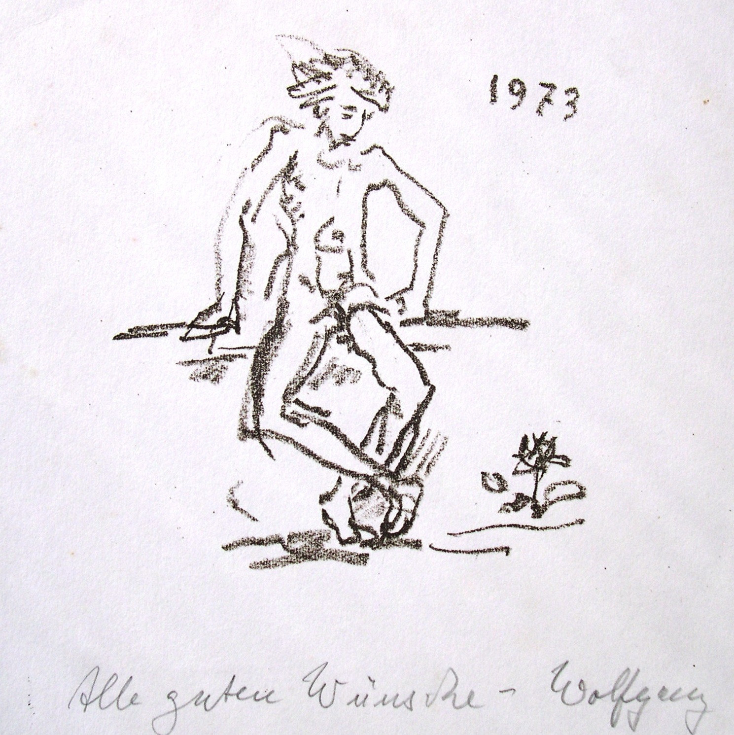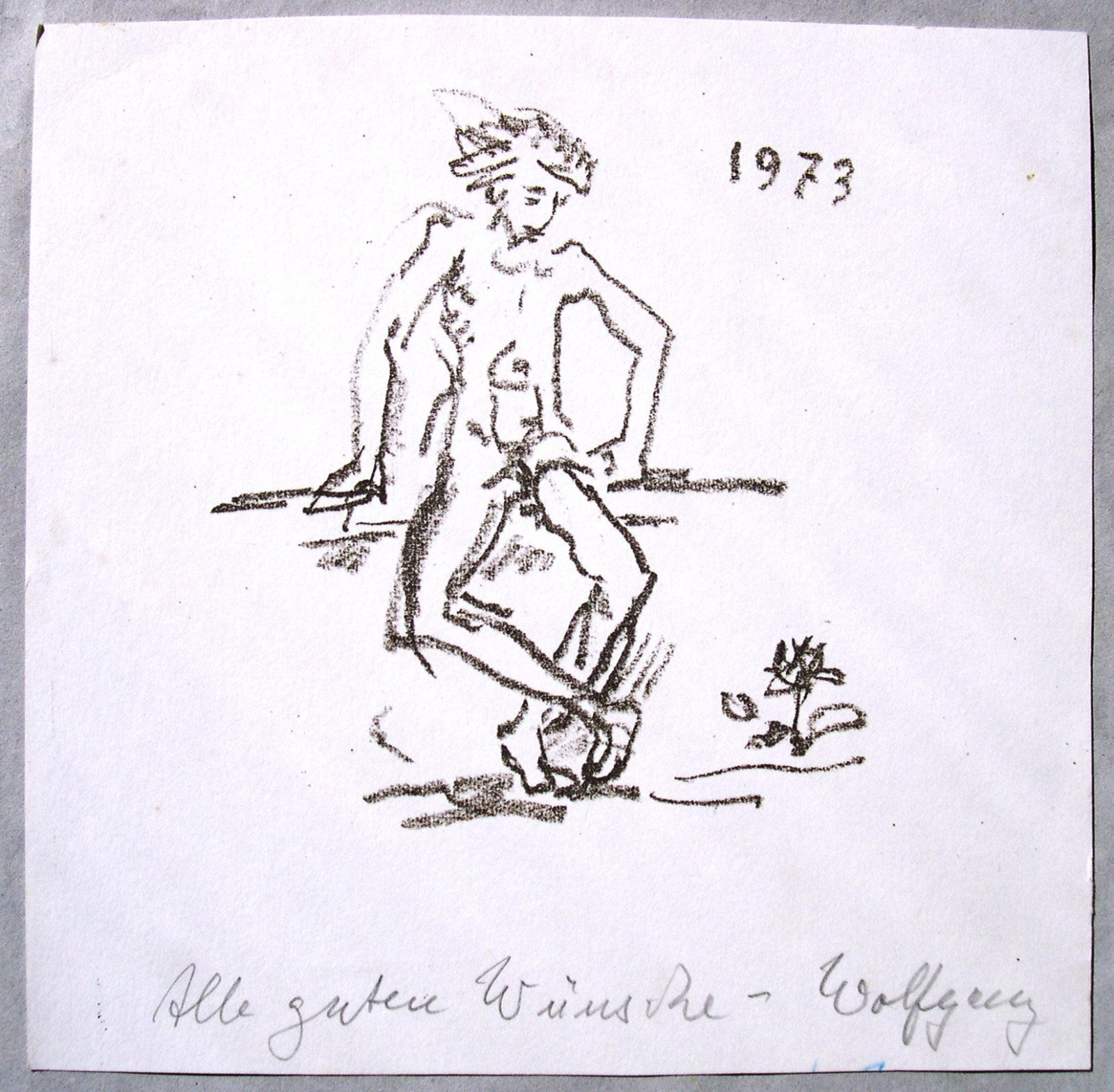 ohne Titel [Neujahrsgruß für das Jahr 1973, hierzu unten mittig in Blei bezeichnet „Alle guten Wünsche“, sowie oben rechts im Druck bez. „1973“]