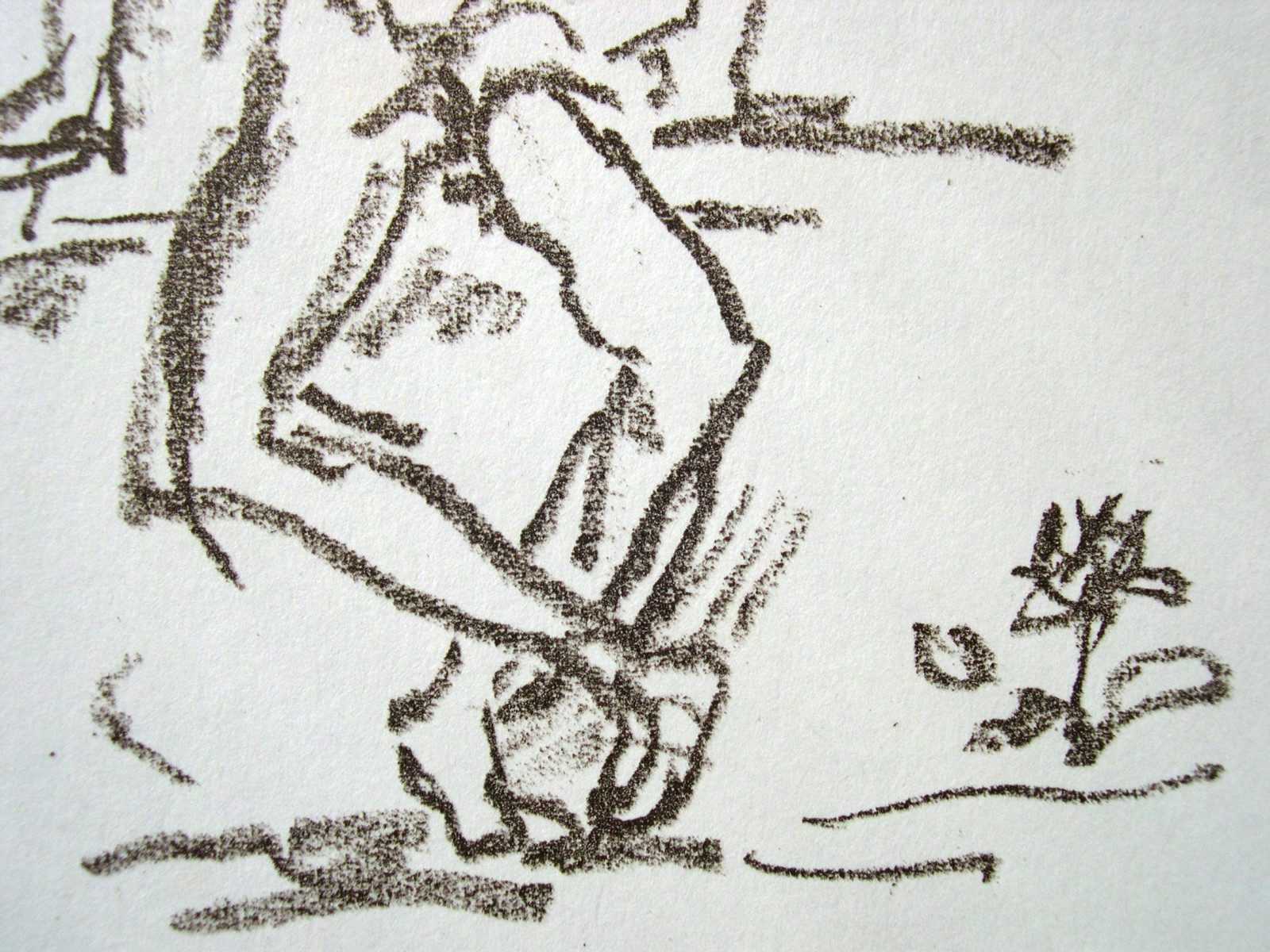 Ecken sehr leicht bestoßen; Ecke oben links leichte Stauchung; schwach (stock-)fleckig; sehr leichte Druckstellen im Blatt; am unteren Rand rechts leicht farbfleckig; verso am rechten Rand leicht fleckig