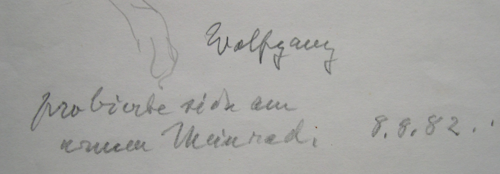 links in Blei sign. „Wolfgang“, rechts in u.r. in blauem Kugelschreiber monogr. „WvW“