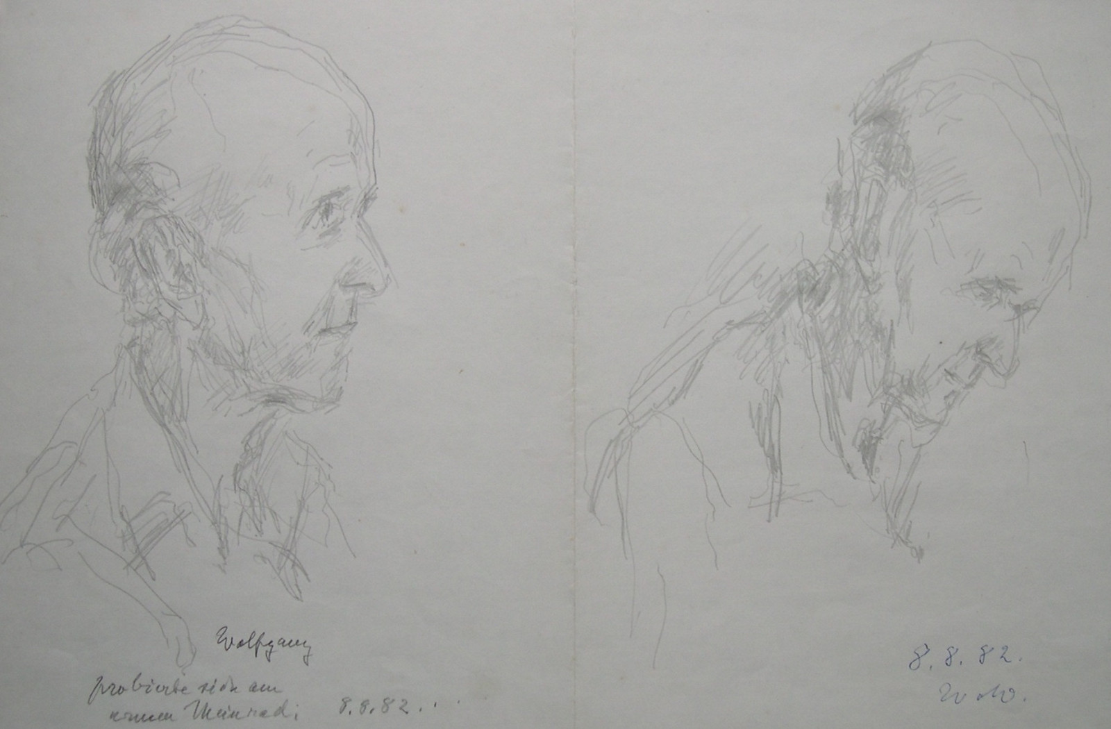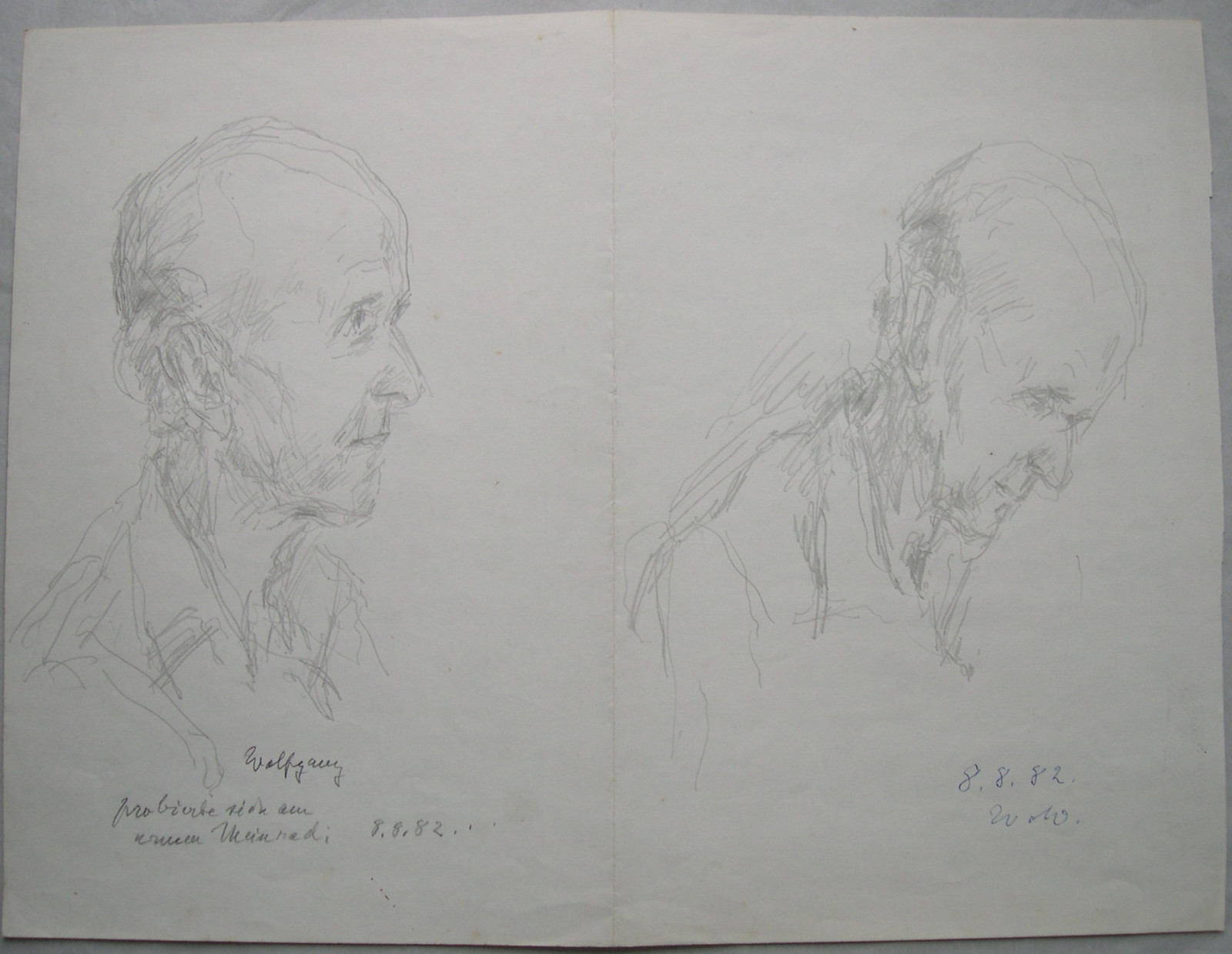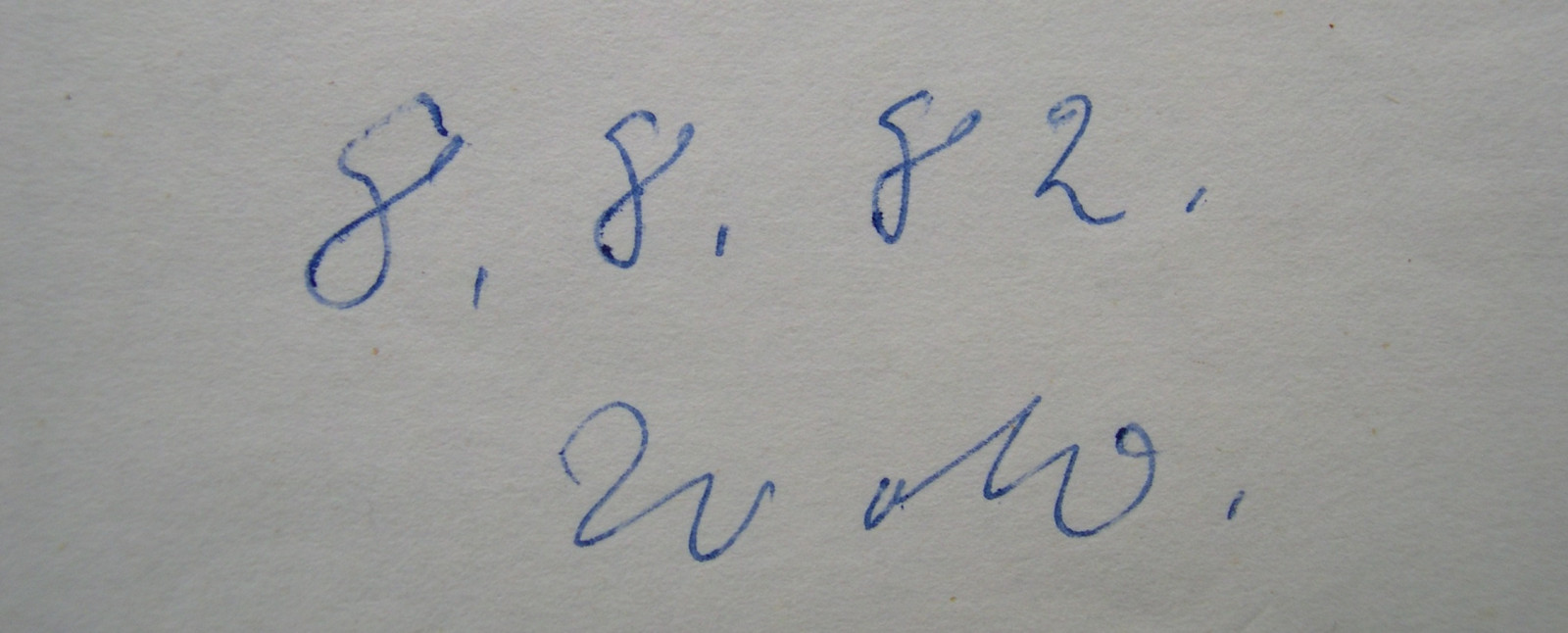 links – u.r. in Blei datiert „8.8.[19]82“; rechts – ebenso u.r. in blauem Kugelschreiber dat.