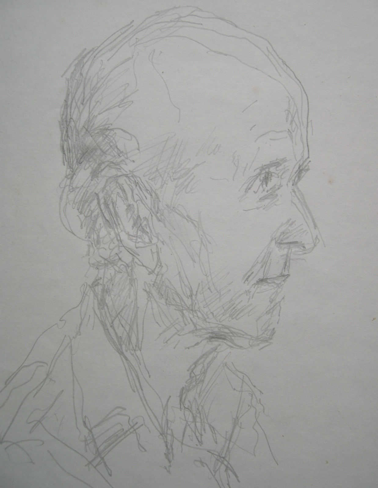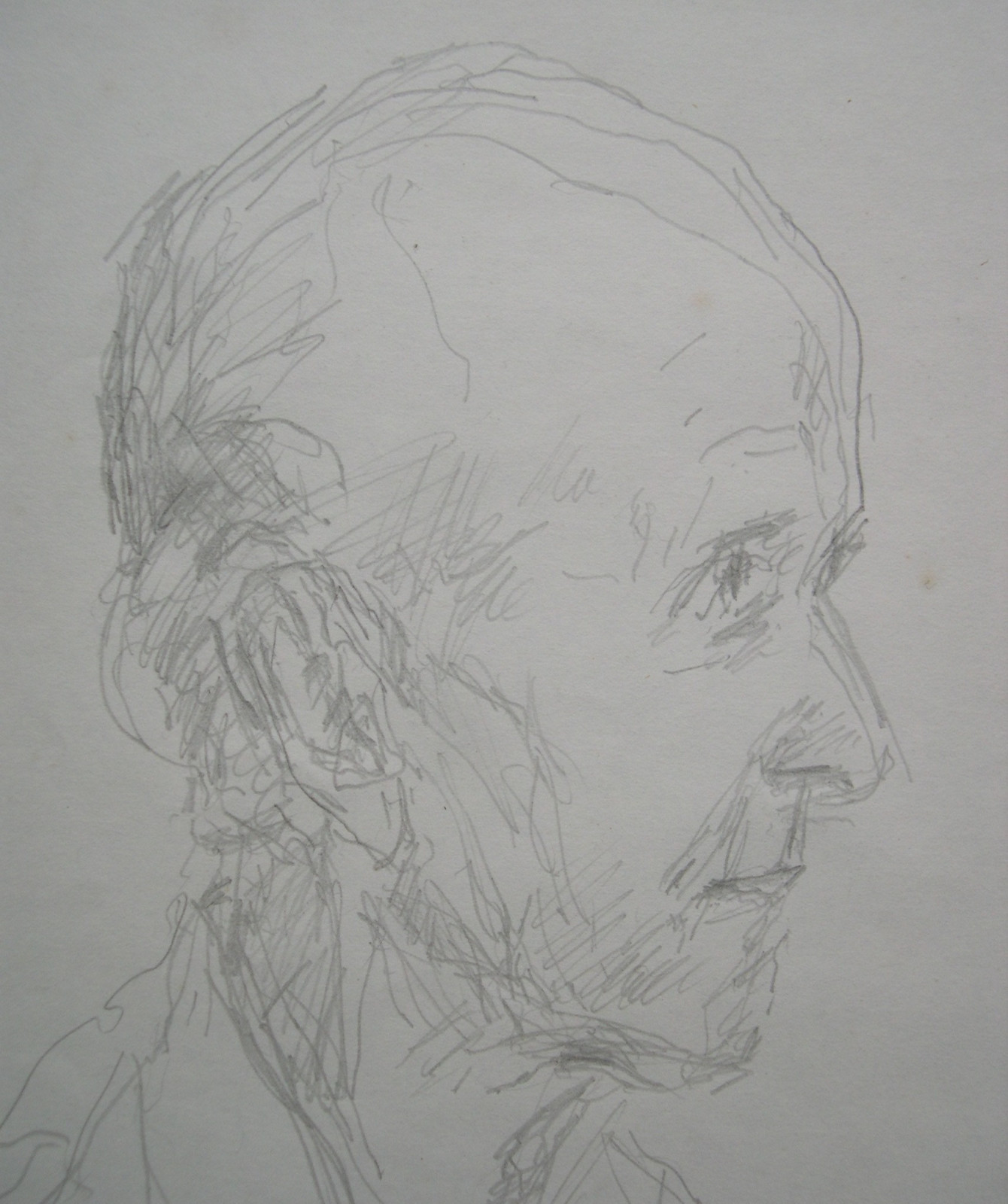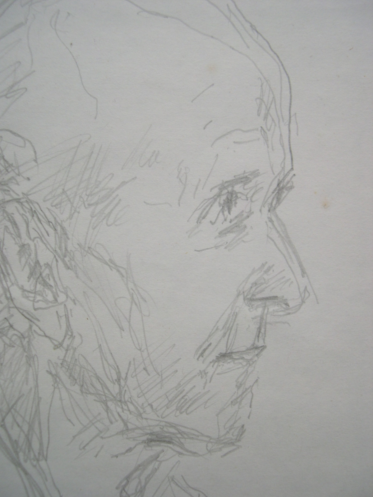 2 Porträts von Meinrad Köhler (1920 Oppeln (Oberschlesien) – 2007 Bad Buchau) [hierzu am unteren Rand der linken Zeichnung in Blei bez. „Wolfgang / probierte sich am armen Meinrad“]