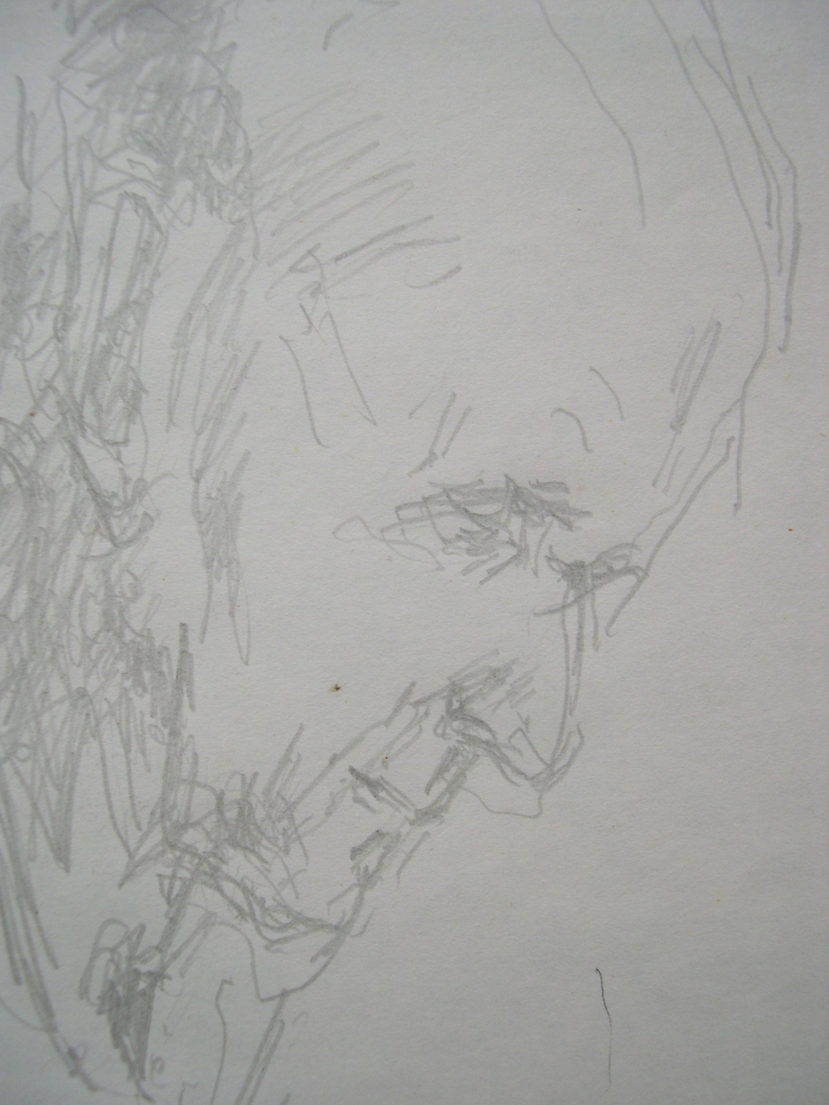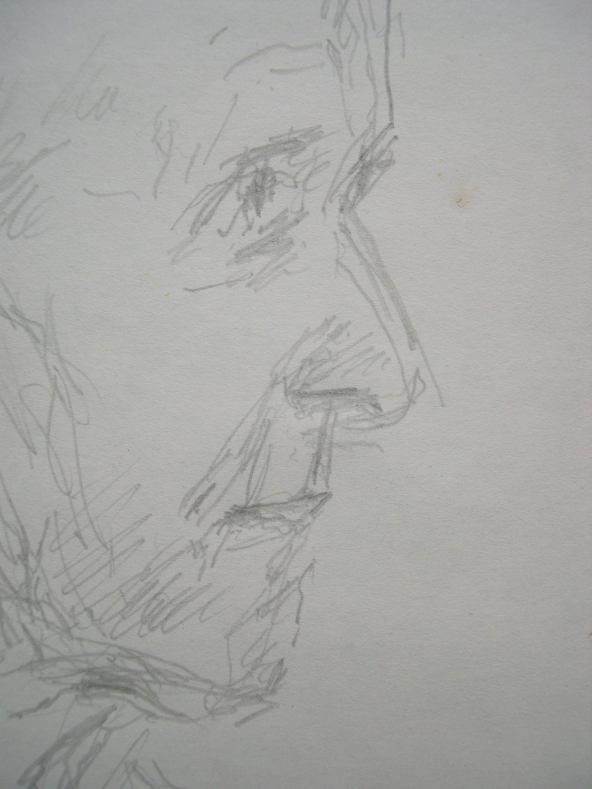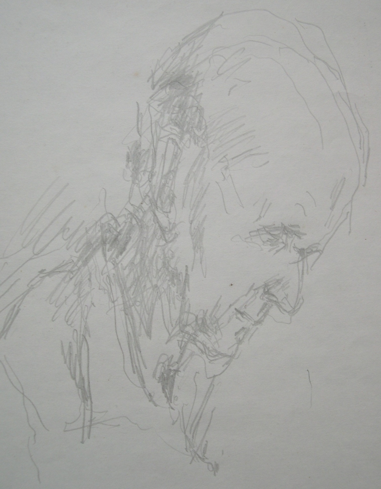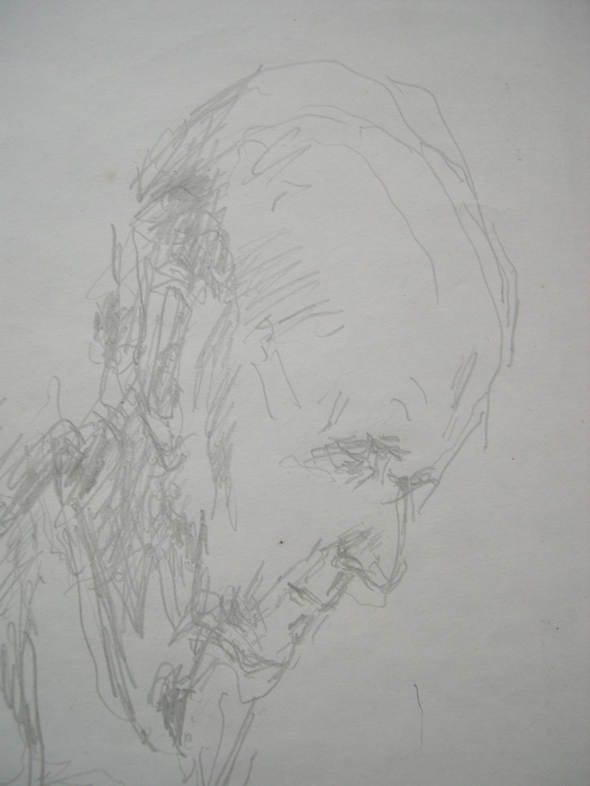 2 Porträts von Meinrad Köhler (1920 Oppeln (Oberschlesien) – 2007 Bad Buchau) [hierzu am unteren Rand der linken Zeichnung in Blei bez. „Wolfgang / probierte sich am armen Meinrad“]