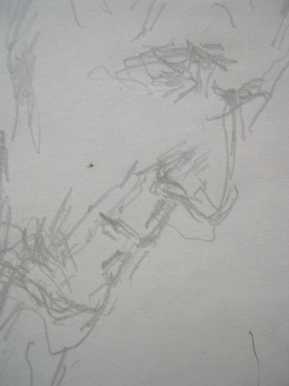 Bleistift auf Zeichenpapier, mittig gefaltet