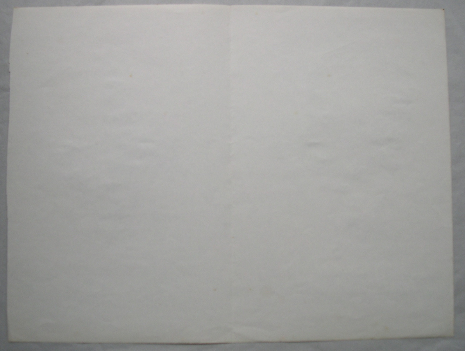Blatt mittig gefaltet; rechter Blattrand etwas unsauber beschnitten; im linken Bereich unten leicht fleckig; im rechten Randbereich unten leicht fleckig; Ecken etwas bestoßen