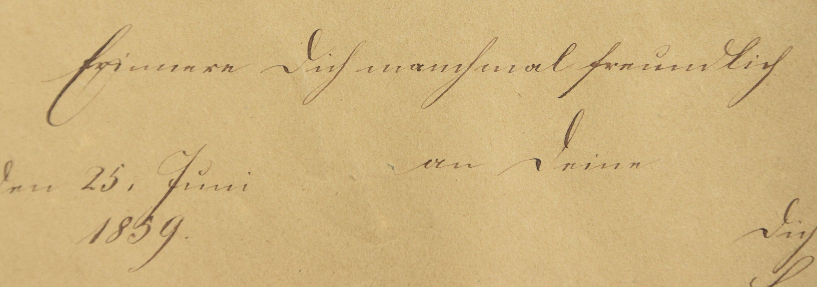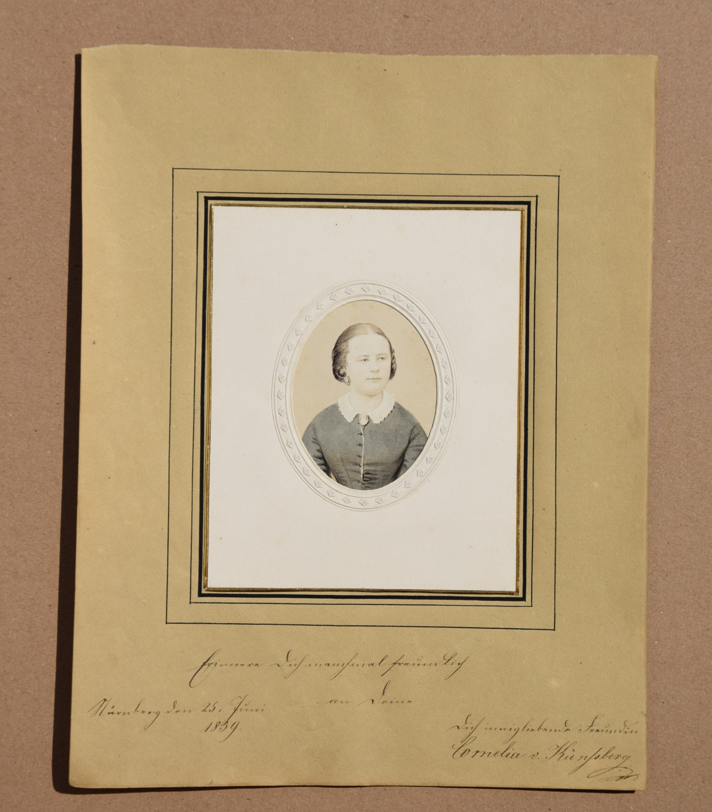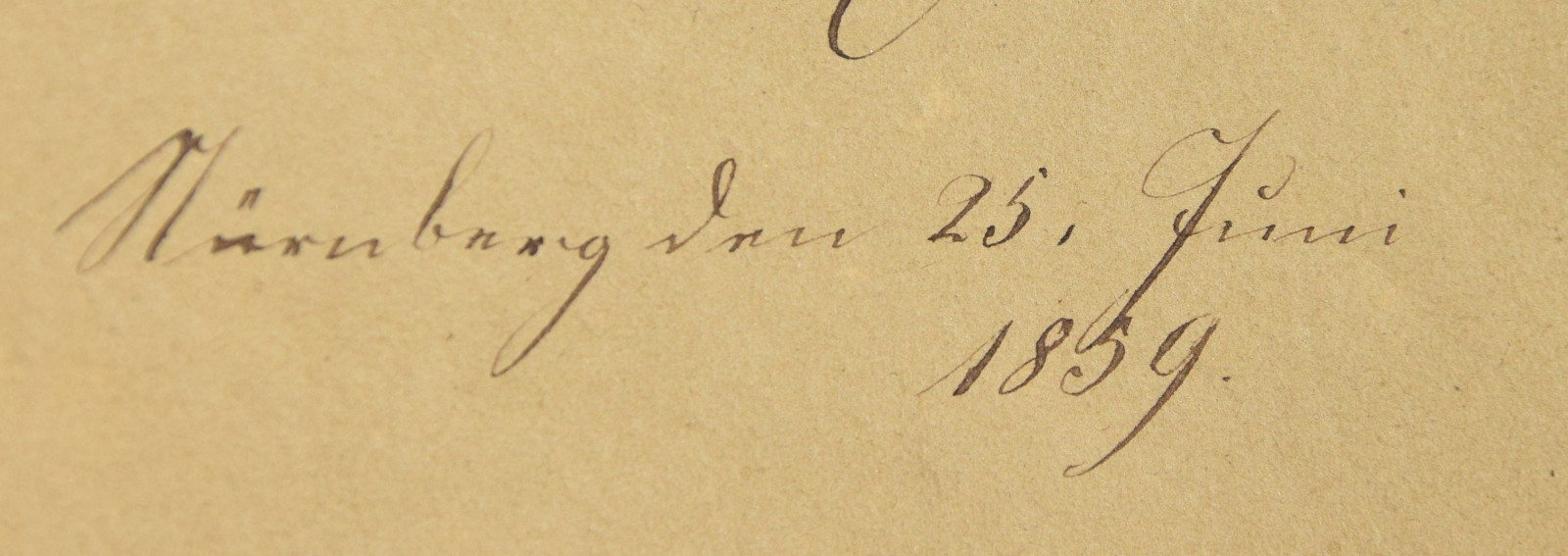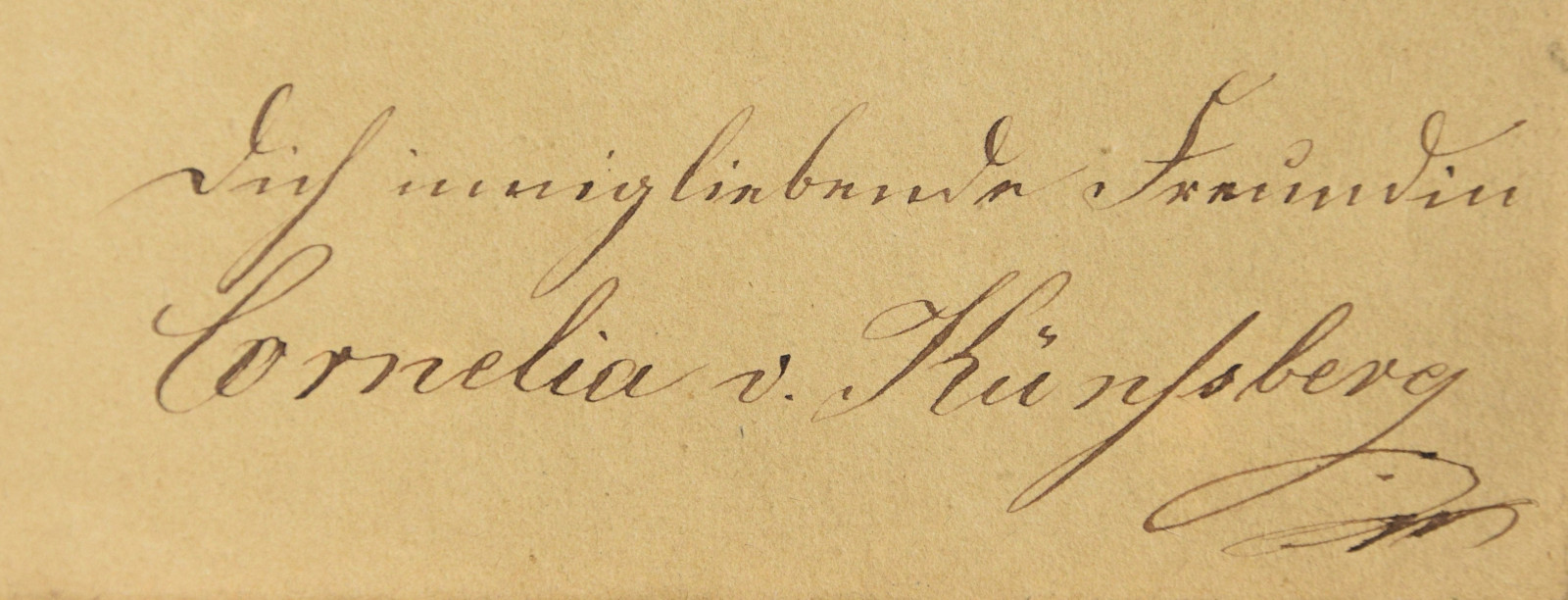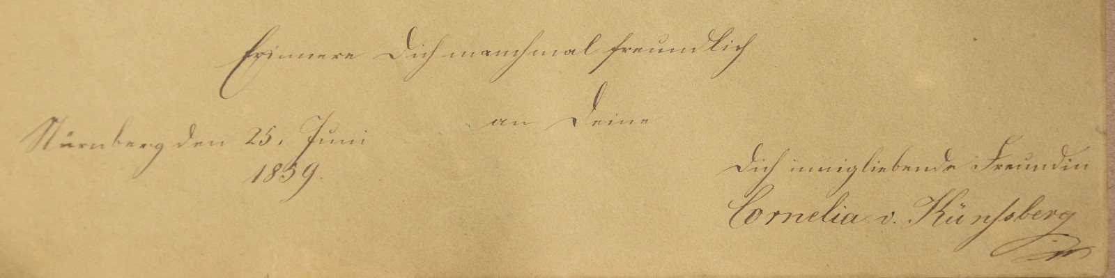 „Nürnberg, den 25. Juni 1859 / Erinnere dich manchmal freundlich an deine dich innigliebende Freundin Cornelia v. Künßberg.“