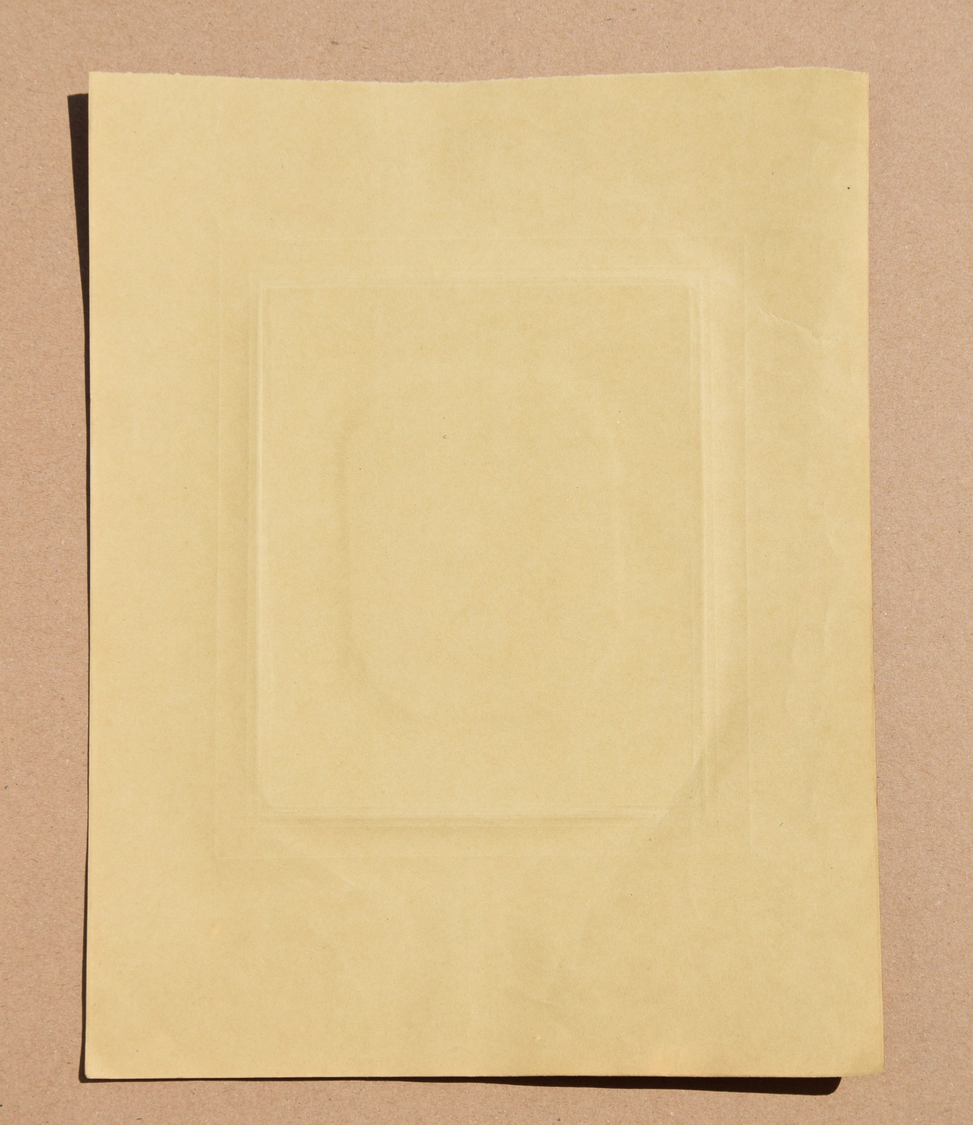 am oberen Rand Abrissspuren (wohl von dem Austrennen aus dem Album); das weiße Passepartout geklebt auf bräunliches Papier; Passepartout leicht fleckig; unterlegtes Papier mit Druckstellen, sowie an Ecken etwas bestoßen