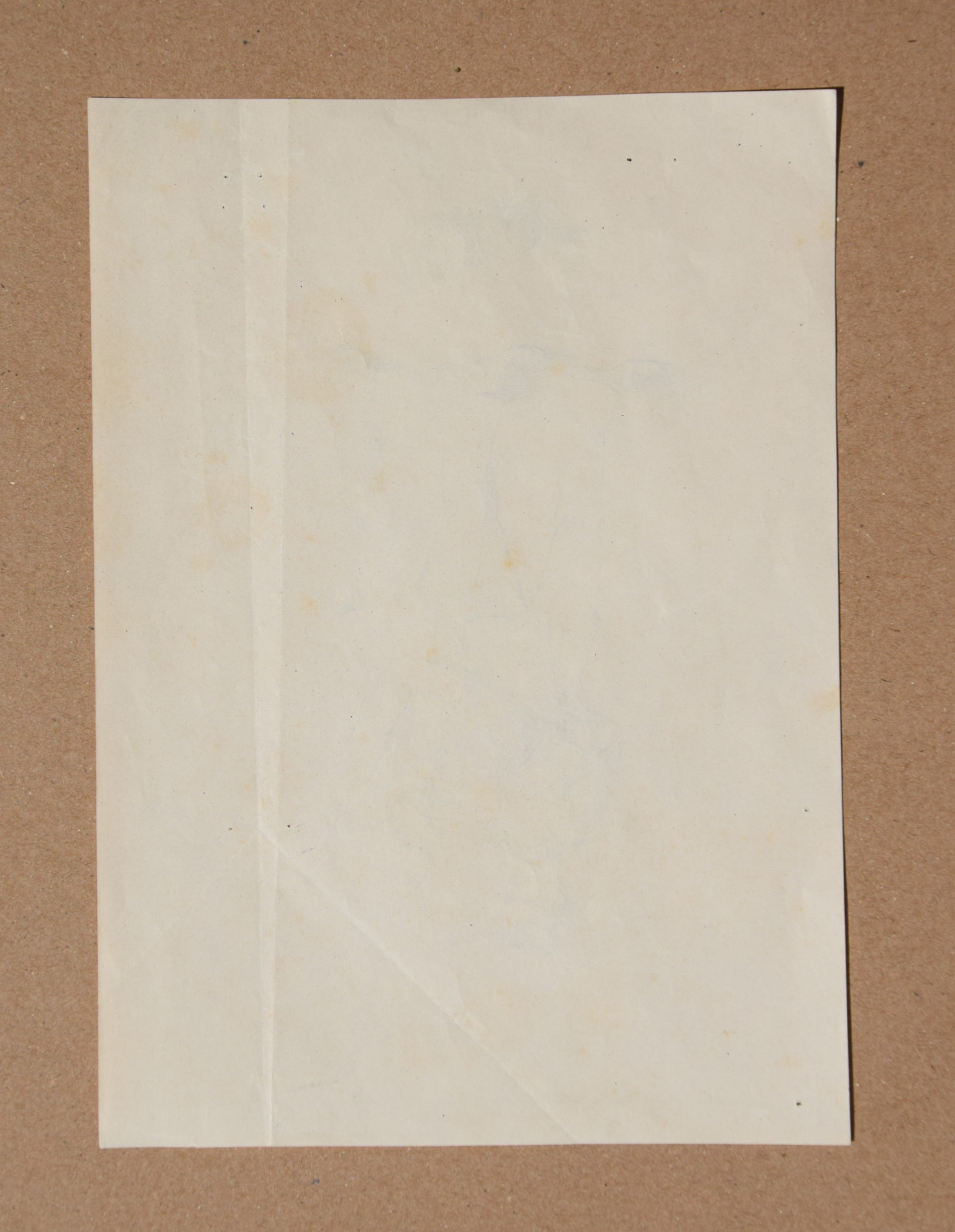 im linken Blattbereich durchgehende vertikale Knickspur; im Bereich oben links zwei diagonal verlaufende Knickspuren; am rechten Rand oben und mittig jeweils ein kleines Einstichlöchlein; am linken Rand unten vier kleine Einstichlöchlein, sowie am linken Rand mittig zwei kleine Einstichlöchlein; leichte Druckstellen; durchgehend etwas fleckig und leicht nachgedunkelt
