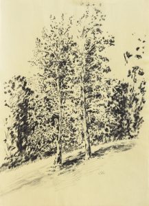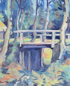 Unbekannter Künstler: Ansicht einer Wiese mit Bäumen und lagernden Menschen (1924)