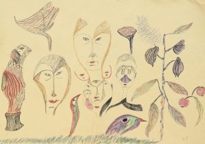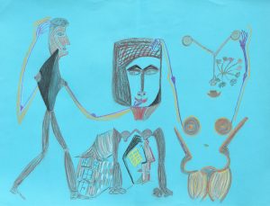 Unbekannter Künstler: drei Personen, wohl in Afrika (um 1999)