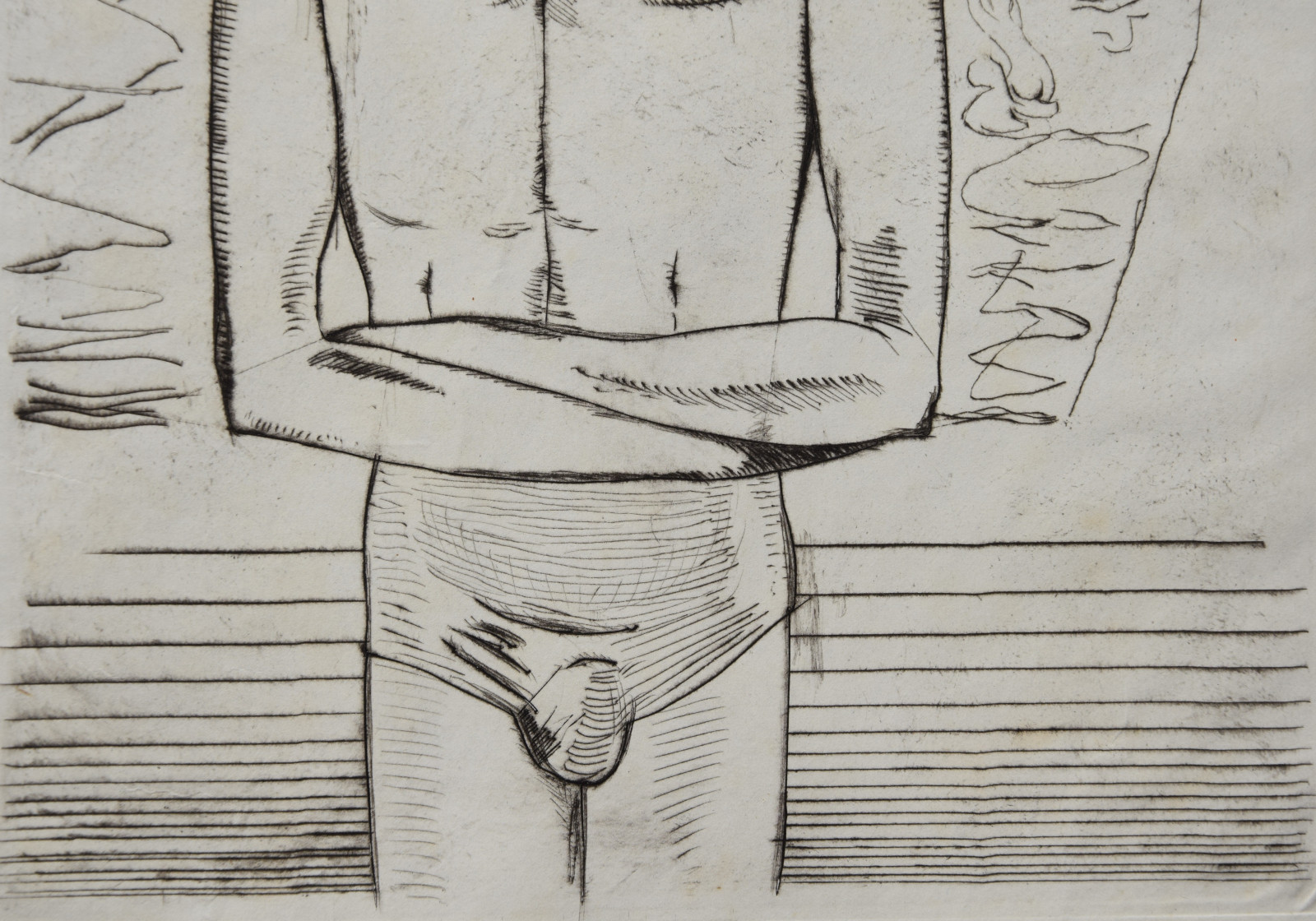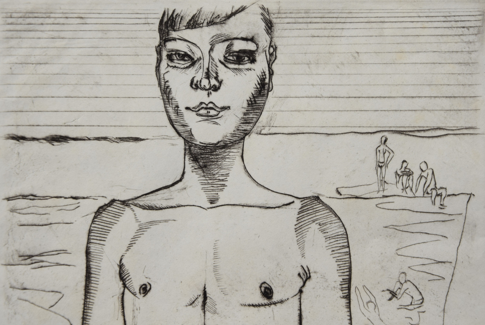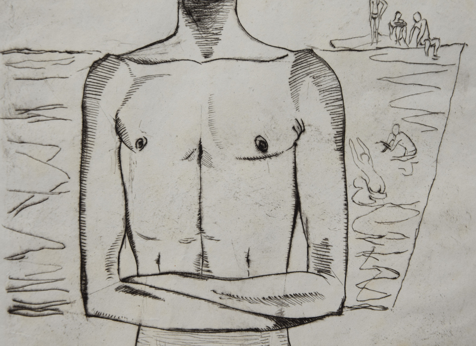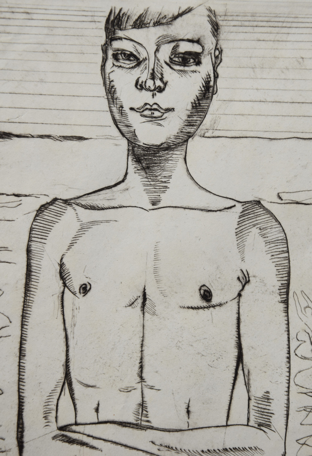 Neben der deutlich von der Neuen Sachlichkeit beeinflussten Ausführung, ist auch beachtenswert, dass der Jüngling in seiner knappen, engen Badehose auch mehr als nur subtil eine gewisse homoerotische Konnotation vermittelt, so dass dieses Werk vor dem Hintergrund des obigen Zitats auch eine biografisch interessante Relevanz erfährt.