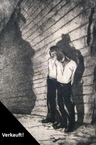 Daneben kann sich der Schmerz aber auch in seiner blanken Körperlichkeit zeigen. Schmerz durch Hunger, Schmerz durch körperliche Gewaltanwendung, Schmerz durch schlichte Brutalität (Otto Schubert). Die Rollen derjenigen die Schmerzen erdulden müssen und derjenigen die Schmerzen verursachen sind bei Schubert deutlich erkennbar, stellen uns aber gerade in dieser unmittelbaren, vielleicht auch abstoßenden Prägnanz vor das zentrale ‚Warum‘ hinter dieser rohen Gewalt. Kann hierauf auch keine befrie-digende Antwort gefunden werden, so lässt sich doch oftmals in den Darstellungen ein gemein-sames Ende dieser physischen Schmerzen erahnen: der Tod.