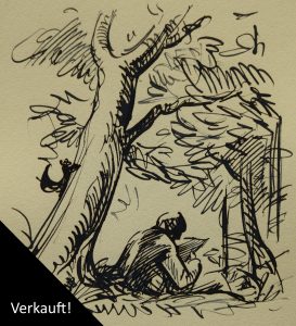 Der individuellen Abgeschlossenheit und Ruhe, welche Lesende und Bücher an sich vermitteln, haben Künstler dabei auf ganz unterschiedliche Weise Ausdruck verliehen. Mal ganz flüchtig, beinahe intim wie in Richard Drehers Zeichnung, in der der Lesende unter einem Baum sitzend so in die Lektüre vertieft ist, dass sich ihm selbst ein Eichhörnchen unmittelbar nähern kann. Das Selbstbildnis von Hans Busse ist dagegen weitaus dunkler und der uns anblickende Künstler macht hier eher den Eindruck, als ob er nur äußerst ungern sich vom Buch abwendet, wir ihn quasi in seinem „Eintauchen“ stören.