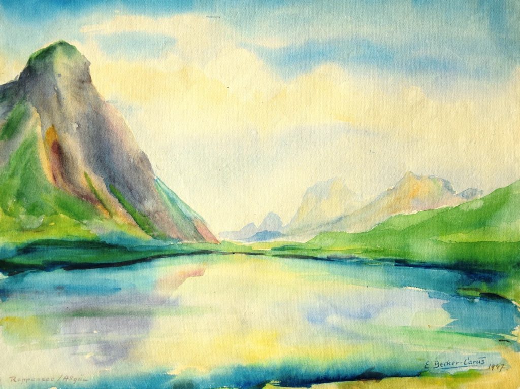 1947 war Ewald Becker-Carus am Rappensee in den Allgäuer Alpen und es entstand dieses zauberhaft leichte, nun fast 80 Jahre alte Aquarell…