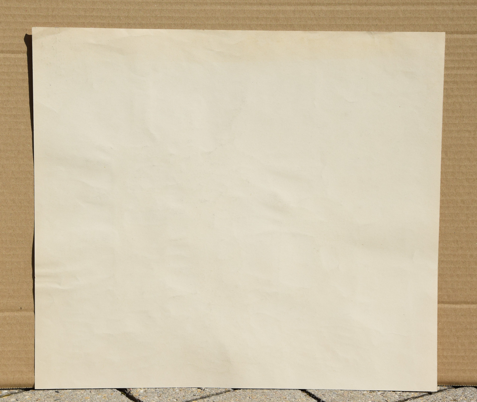leichte Druckstellen im Blatt; Ecken schwach bestoßen; Ecke oben rechts mit Knickspur; im rechten Randbereich unten leicht wellig; im Bereich oben rechts mit leichten Quetschungen; partiell schwach fleckig; insgesamt leicht nachgedunkelt