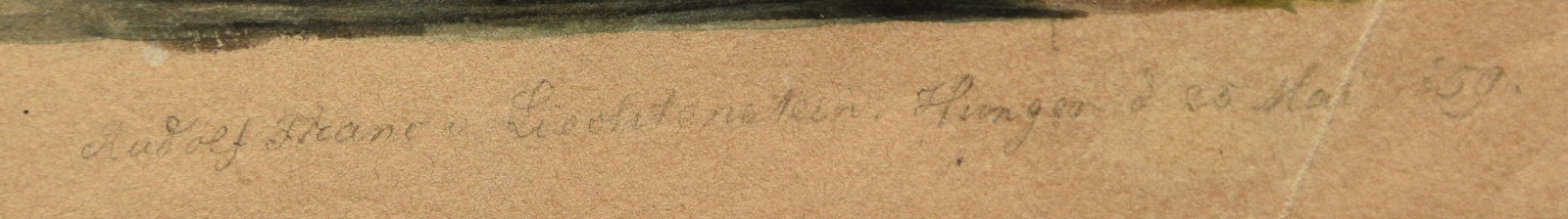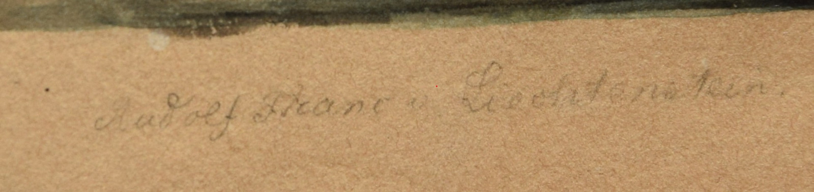unten rechts in Blei signiert/bezeichnet[?] „Rudof Franz v. Liechtenstein“, verso zusätzlich, ungedeutet bezeichnet „Zeichnung von Ernst Mickel I“
