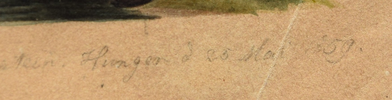 unten rechts in Blei etwas undeutlich lokalisiert und datiert „Hunger[?], d. 25 Mai [18]59“, sowie verso etwas ungenauer datiert mit „ca 1860“